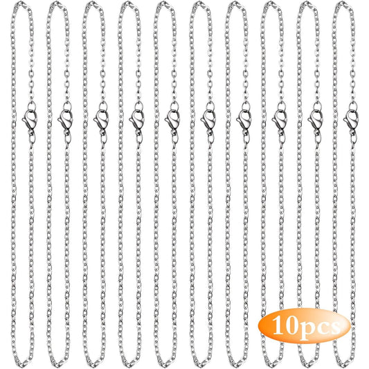 10 Pieces 50 cm 316 Stainless Steel Necklace Extension O-shaped Bracelet Choker Extender Chains with Lobster Claw Clasps for Women DIY Jewelry Making Supplies, Steel Color
