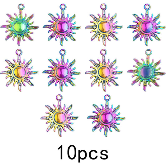 10 Pieces Rainbow Color Sun Pendant Charms Alloy Celestial Sun Dangle Pendants Craft Supplies for DIY Bracelet Necklace Earrings Jewelry Making Decorations