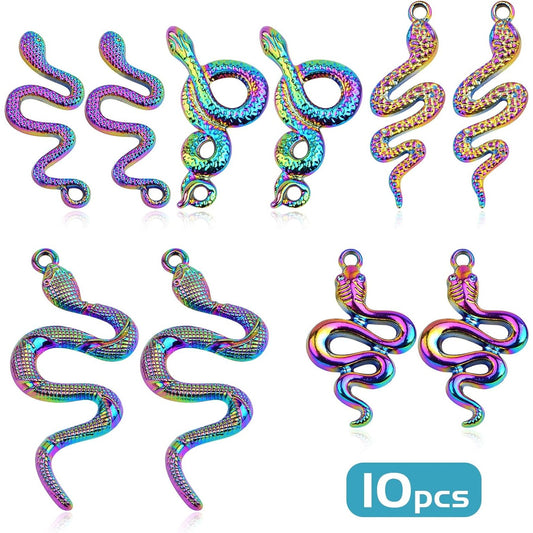 10 Pieces 5 Styles Snake Pattern Pendant Charms Alloy Animal Serpent Shape Dangle Pendants Craft Supplies for DIY Necklace Bracelet Jewelry Making, Rainbow Color