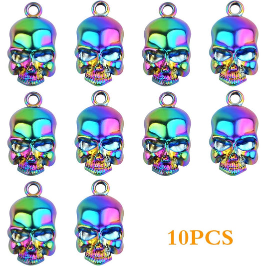 10 Pieces Rainbow Color Skull Head Charms Metal Skull Halloween Dangle Pendants Hanging Ornaments Craft Supplies for DIY Necklace Bracelet Jewelry Making Decor