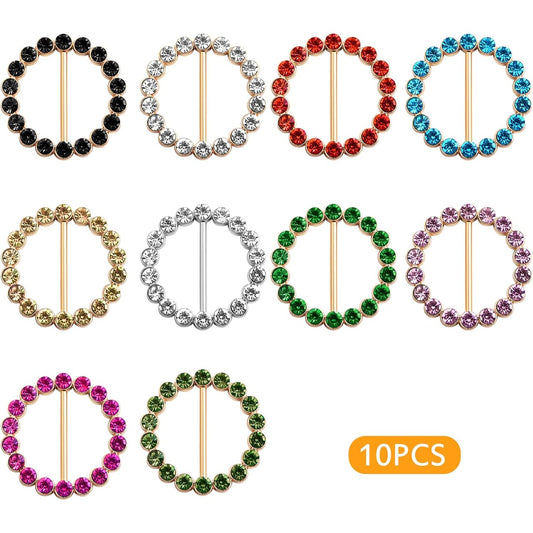 10 Pieces Metal Round Scarf Ring Clips Waist Buckle Circle Clip T-Shirt Silk Tie Pin Clips with Bling Rhinestone for Women Fashion Clothes Hat Belt Decor, 10 Colors