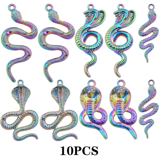 10 Pieces 5 Styles Snake Pattern Pendant Charms Alloy Animal Serpent Shape Dangle Pendants Craft Supplies for DIY Necklace Bracelet Jewelry Making, Rainbow Color