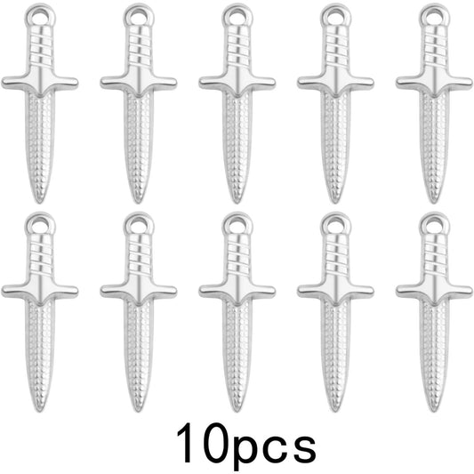 10 Pieces Stainless Steel Dagger Shape Pendant Charms Hypoallergenic Long Sword Knives Pendants Craft Supplies for DIY Necklace Bracelet Jewelry Making Findings