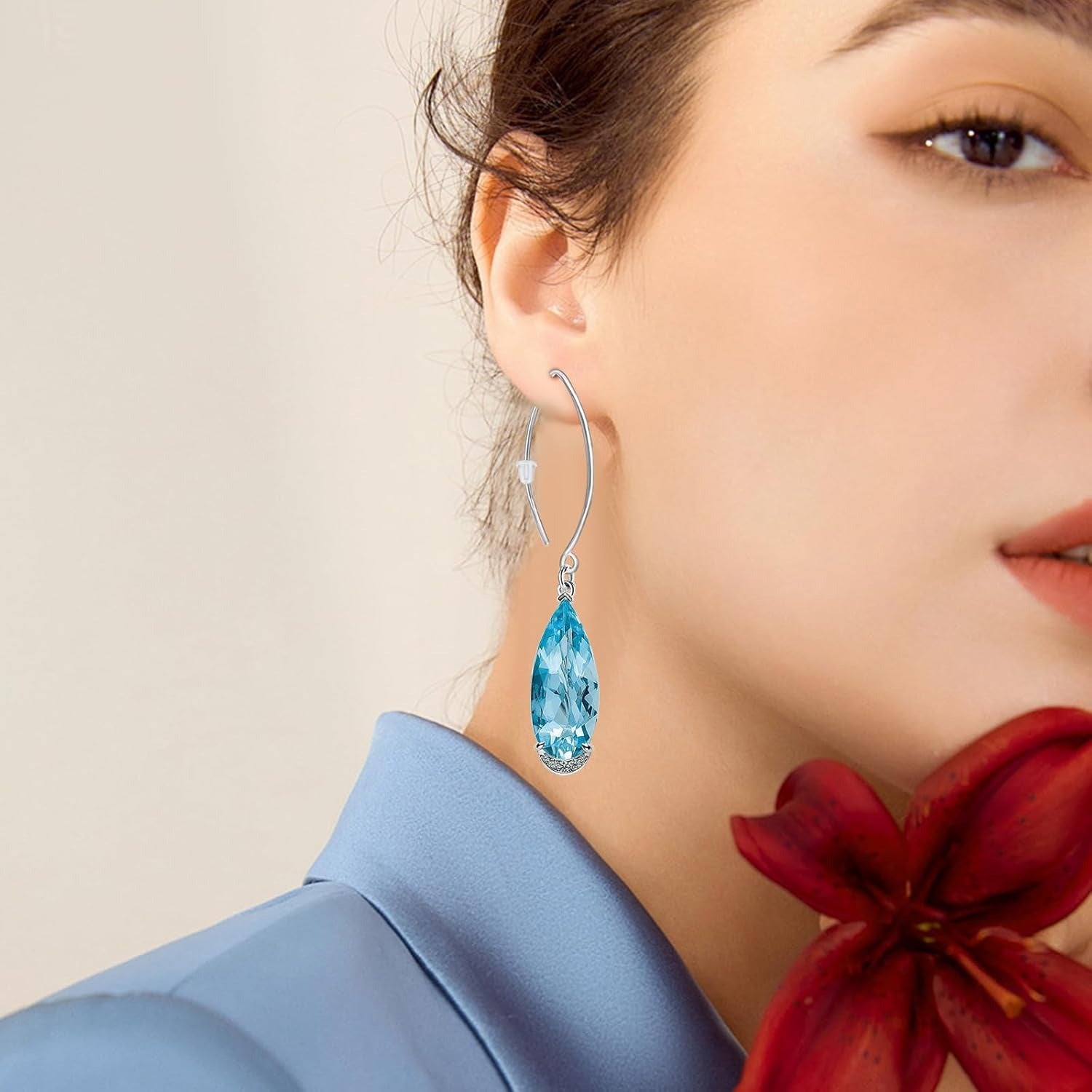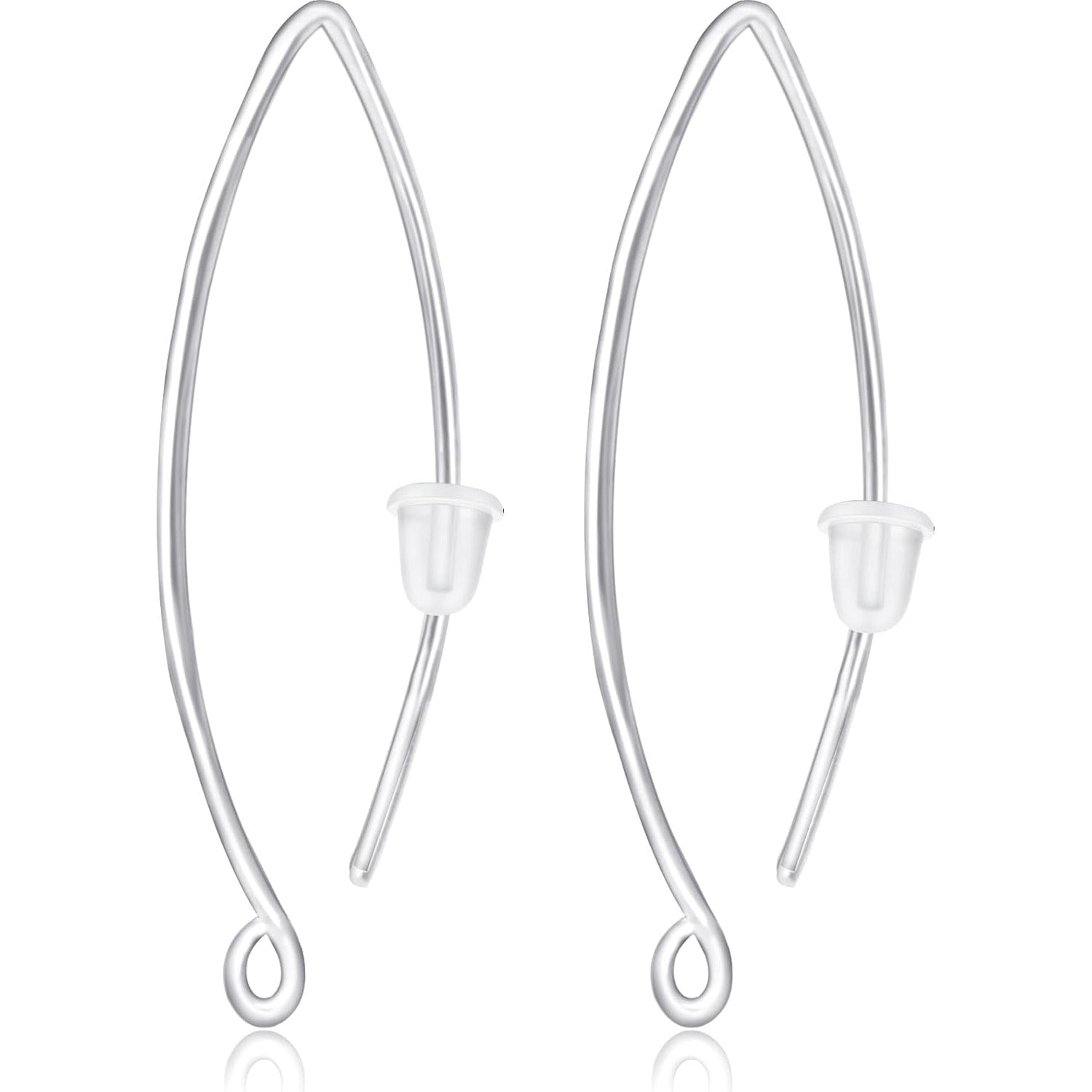 1 Pair of V-Shaped Earring Hooks S925 Sterling Silver Long Ear Wire Hook Dangle Connectors Replacements with Clear Ear Backs for DIY Earrings Crafts Jewelry Making Accessories