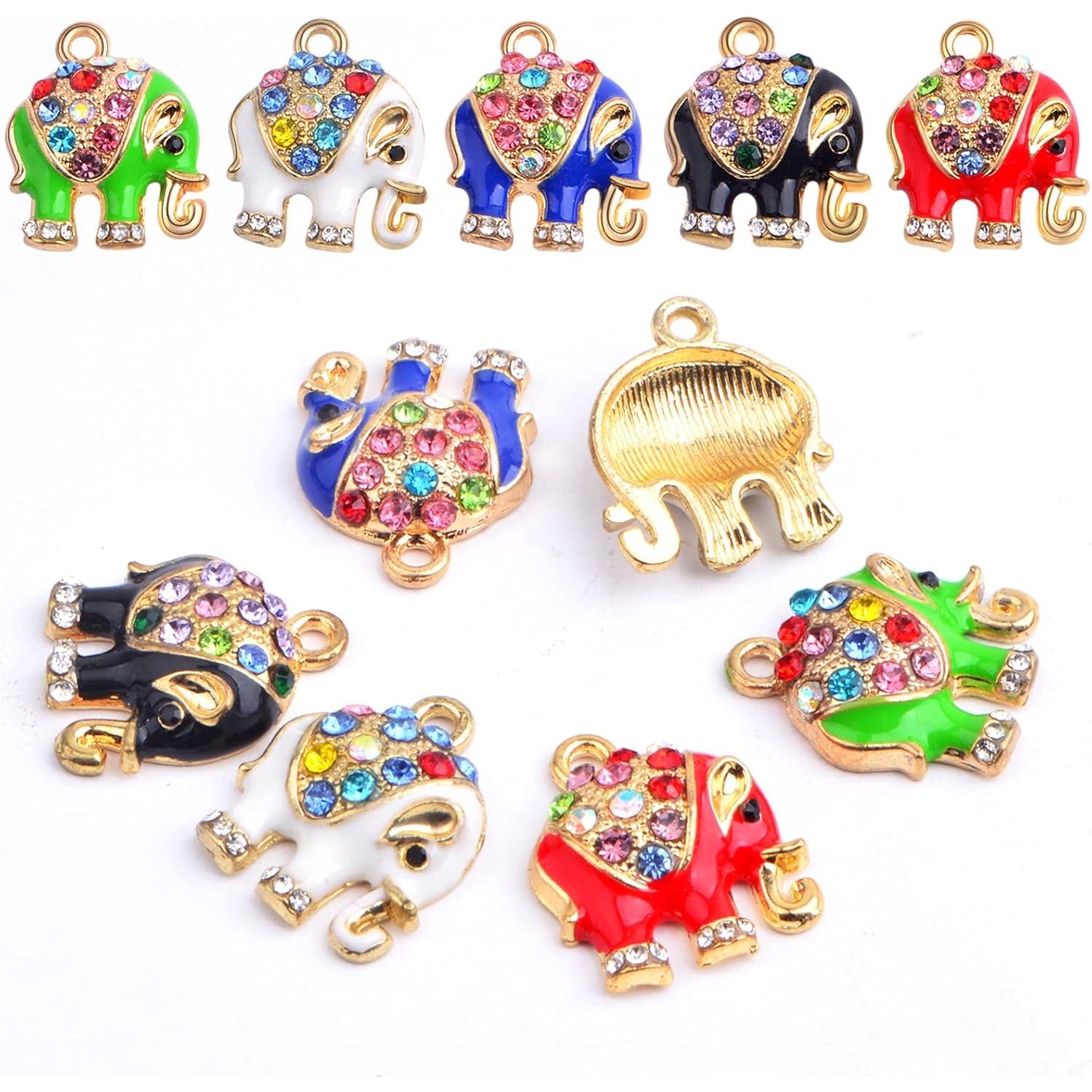 10 Pieces 5 Colors Alloy Enamel Animal Elephant Charms Rhinestone Elephant Pendants Charms Craft Supplies for DIY Bracelet Necklace Keychains Jewellery Making