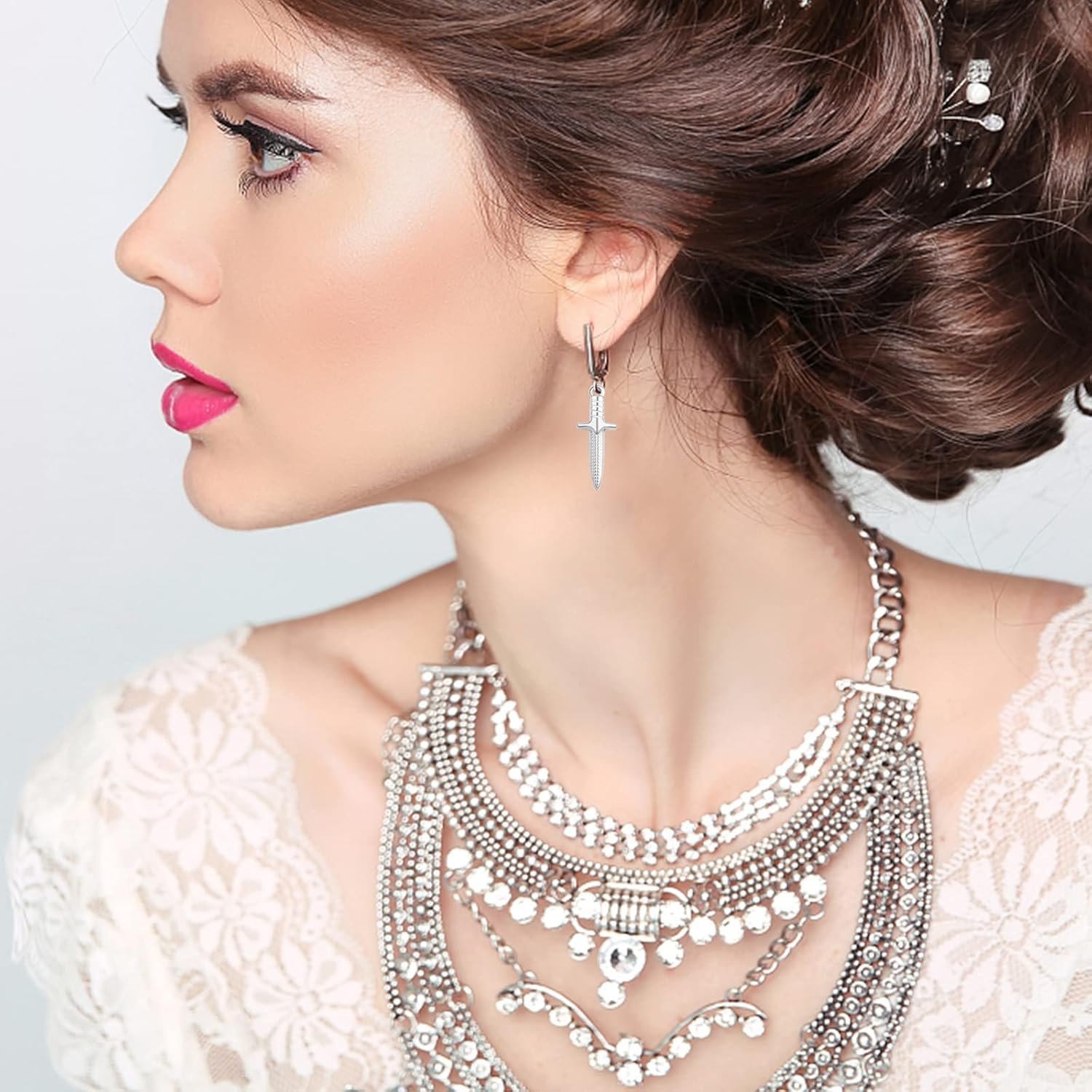 10 Pieces Stainless Steel Dagger Shape Pendant Charms Hypoallergenic Long Sword Knives Pendants Craft Supplies for DIY Necklace Bracelet Jewelry Making Findings