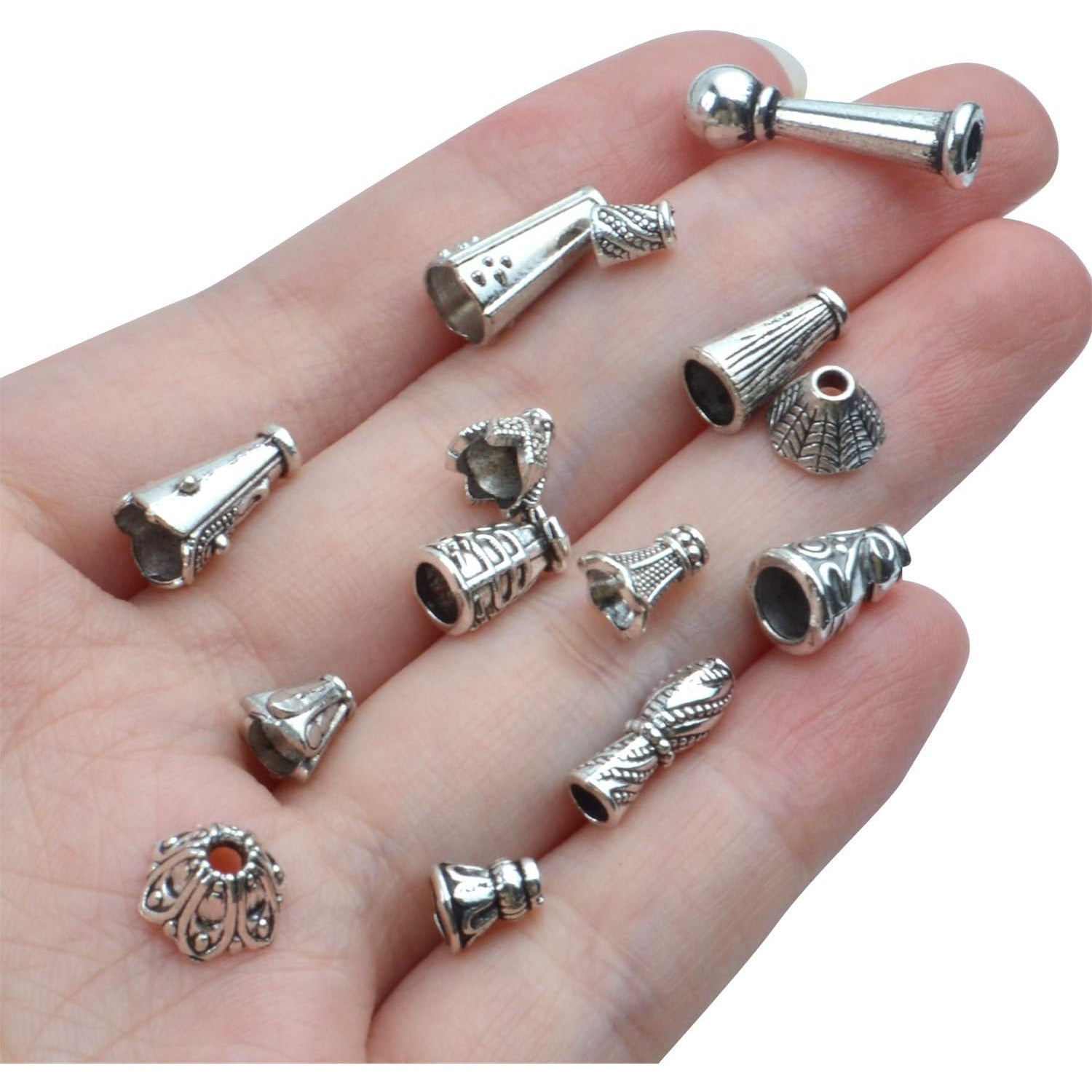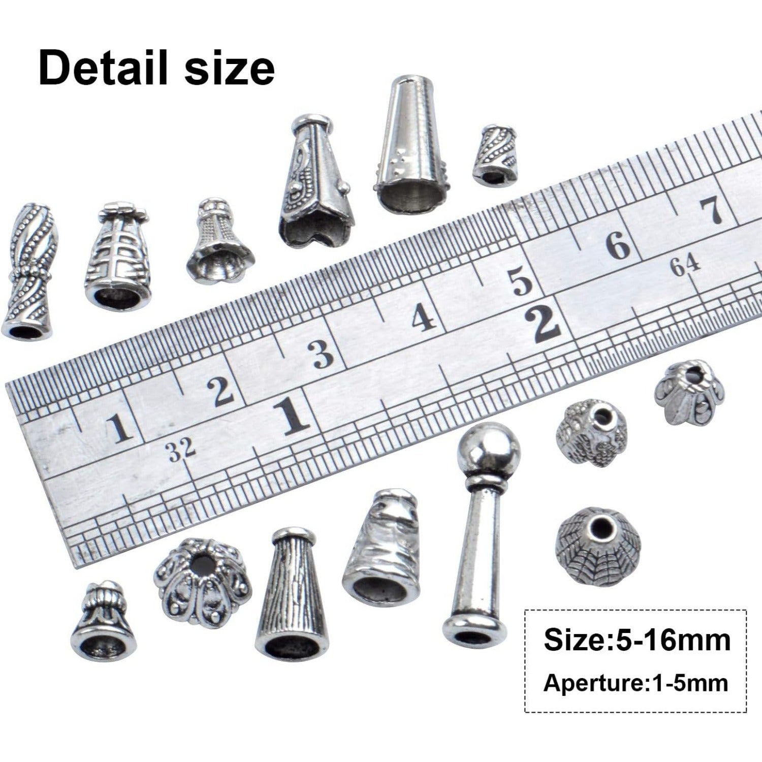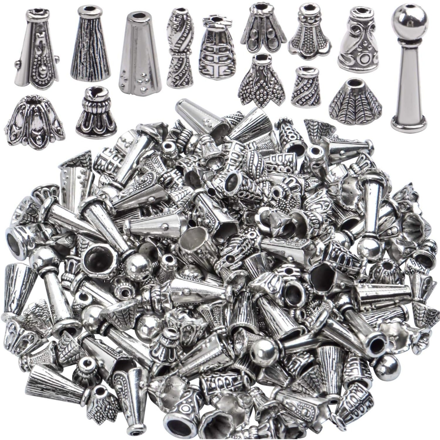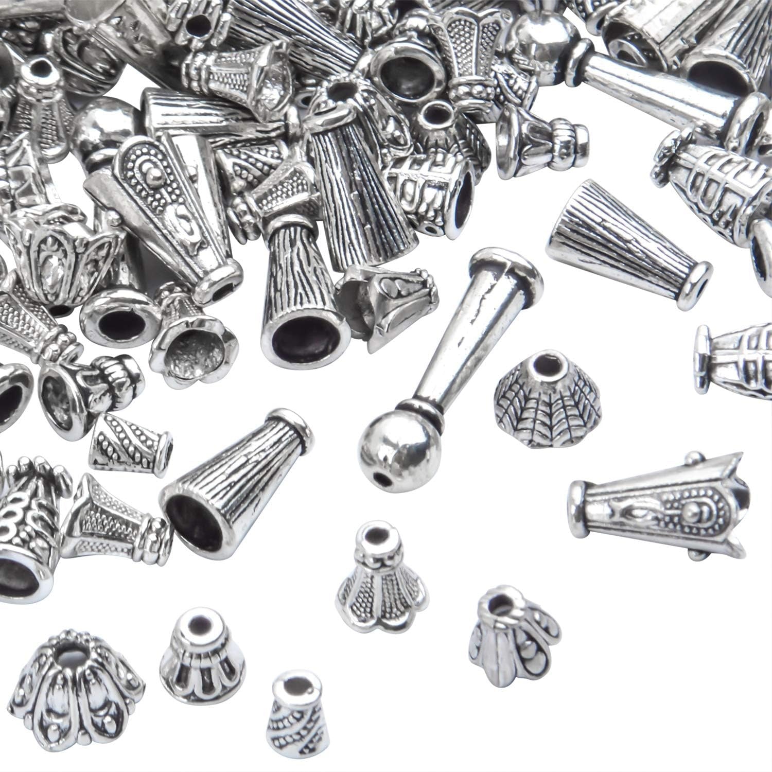 100 Gram (About 130-190pcs) Antique Silver Cone Bead Caps Flower End Caps Tassel End Cap for Jewelry Making Crafts DIY