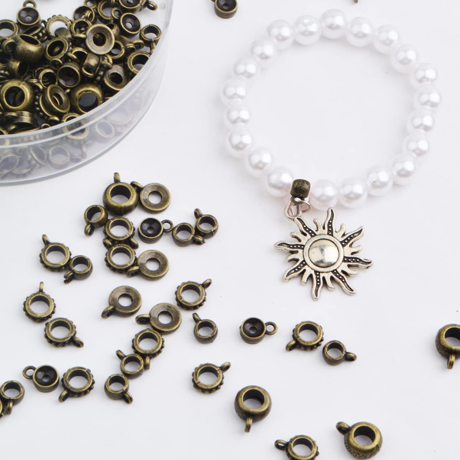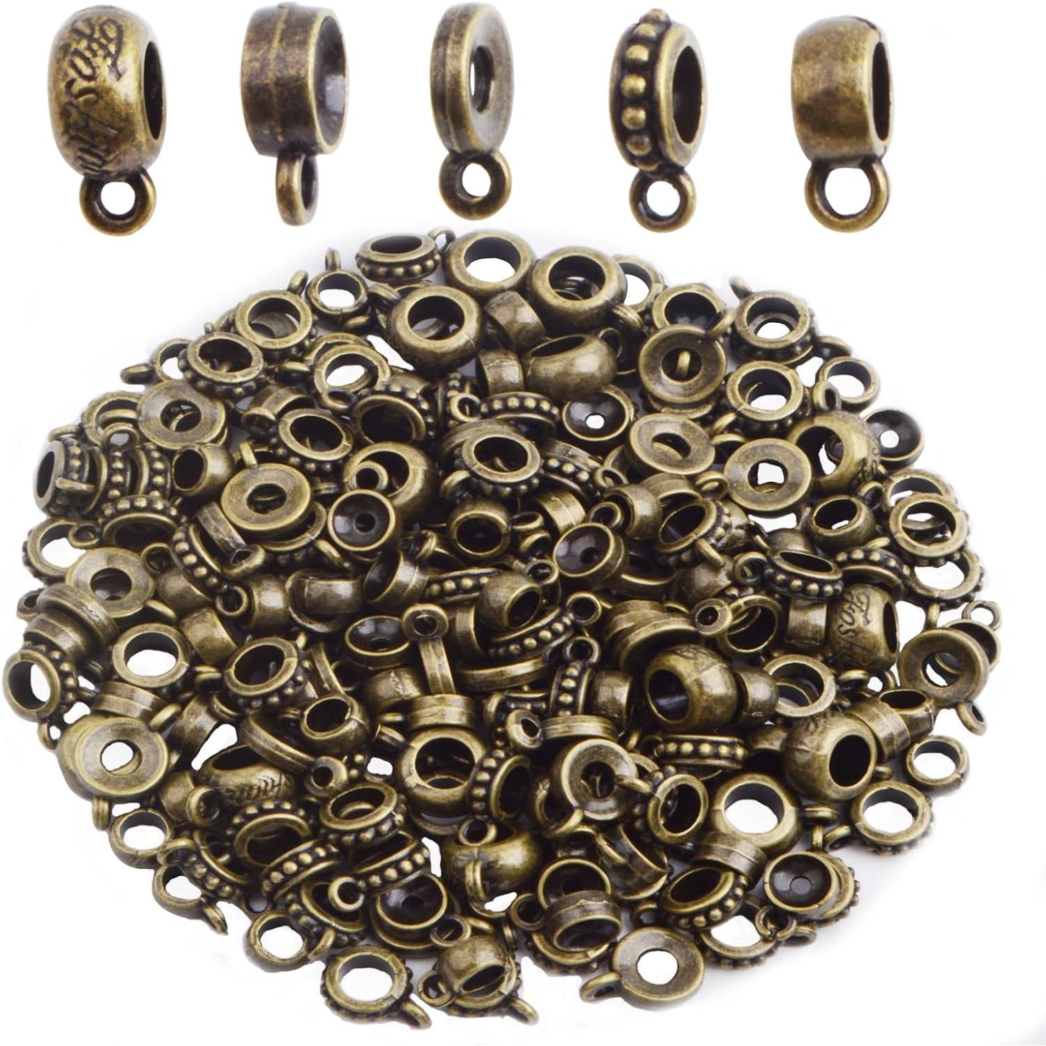 100 Gram Antique Bronze Bail Tube Beads Vintage Tibetan Alloy Bail Beads Connectors Spacer Bead Hanger Links for DIY European Bracelet Jewelry Crafts Making, 5 Styles