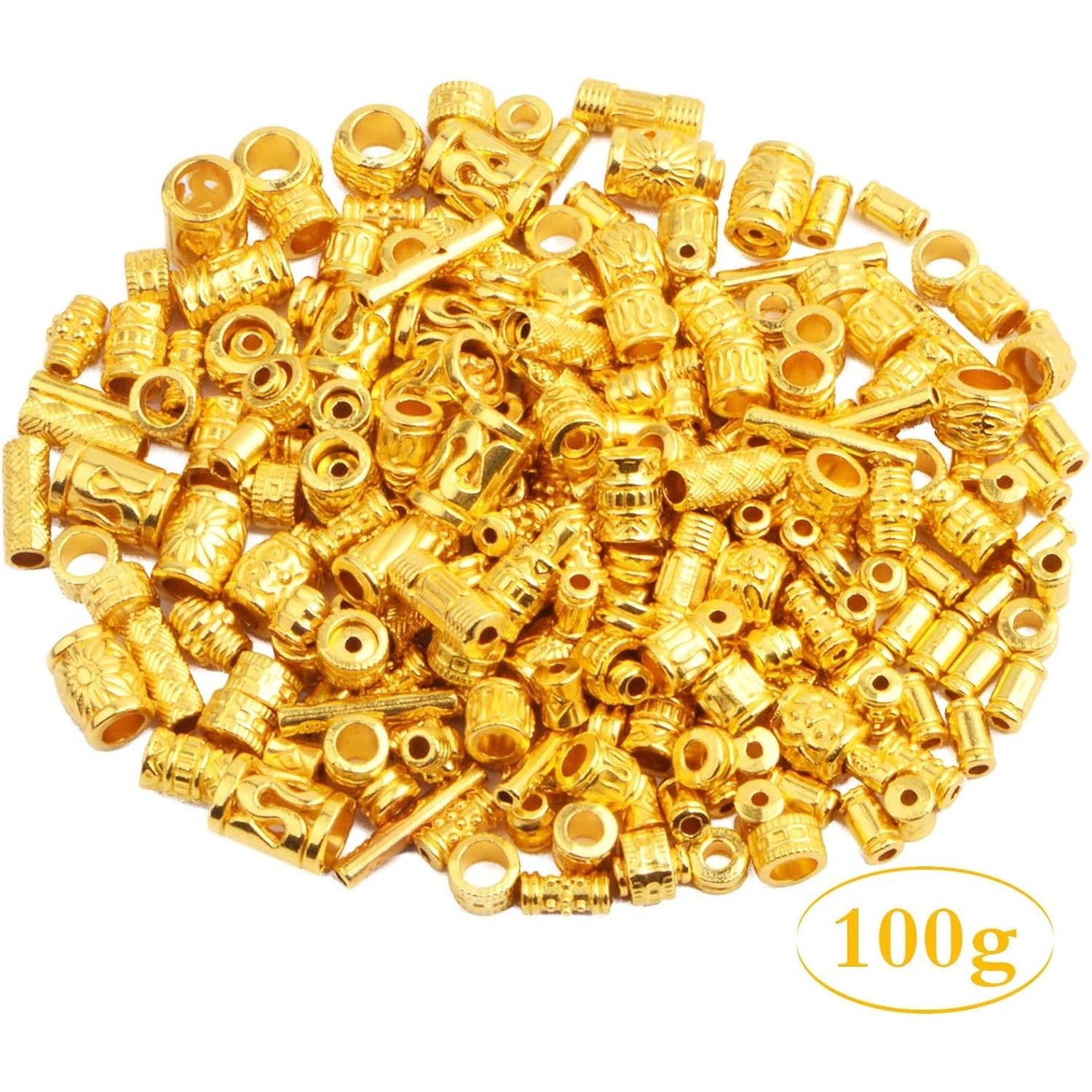 100 Gram Assorted Styles Column Spacer Beads Alloy Barrel Tube Loose Spacer Beads Jewelry Findings Accessories for DIY Bracelet Necklace Craft Supplies, Bright Golden