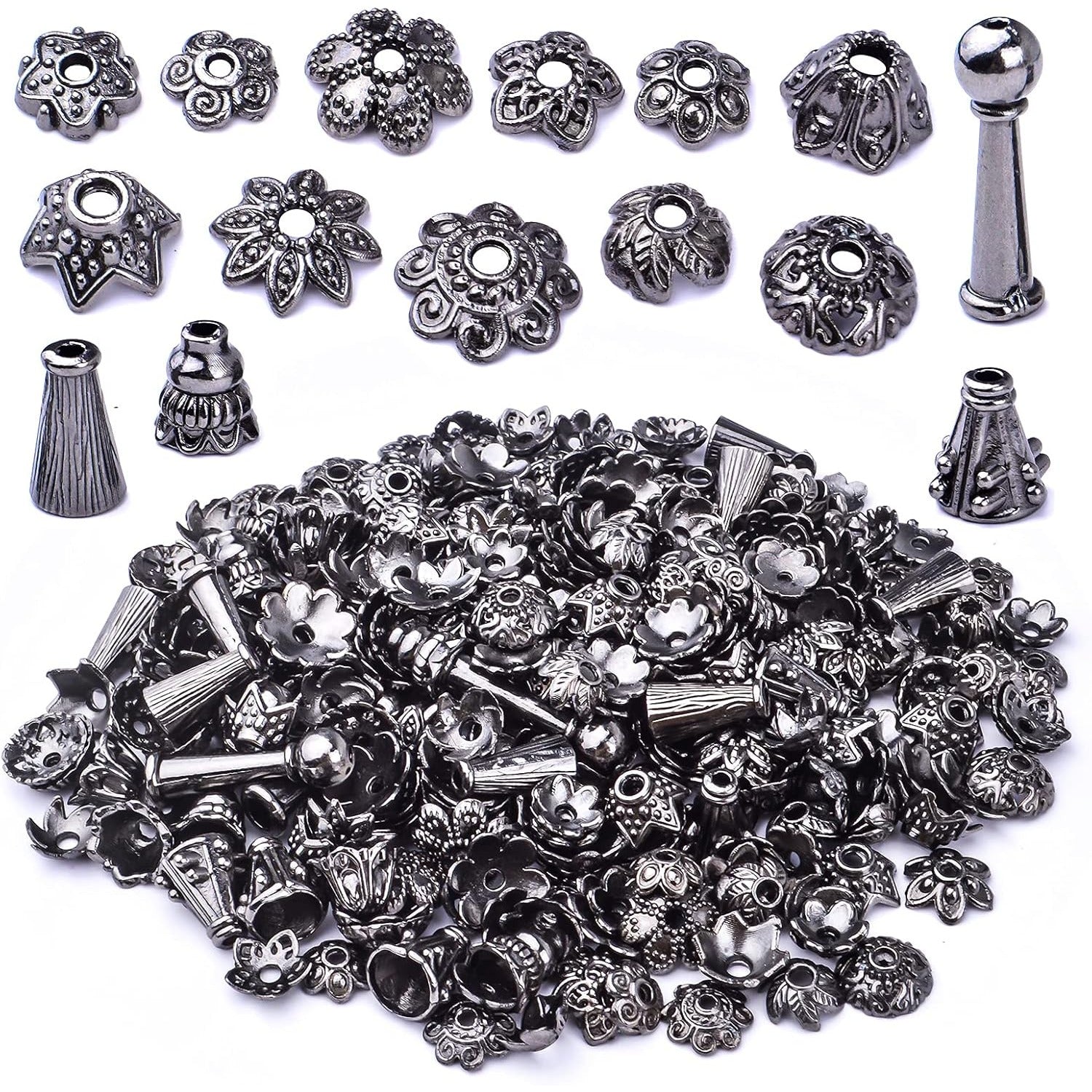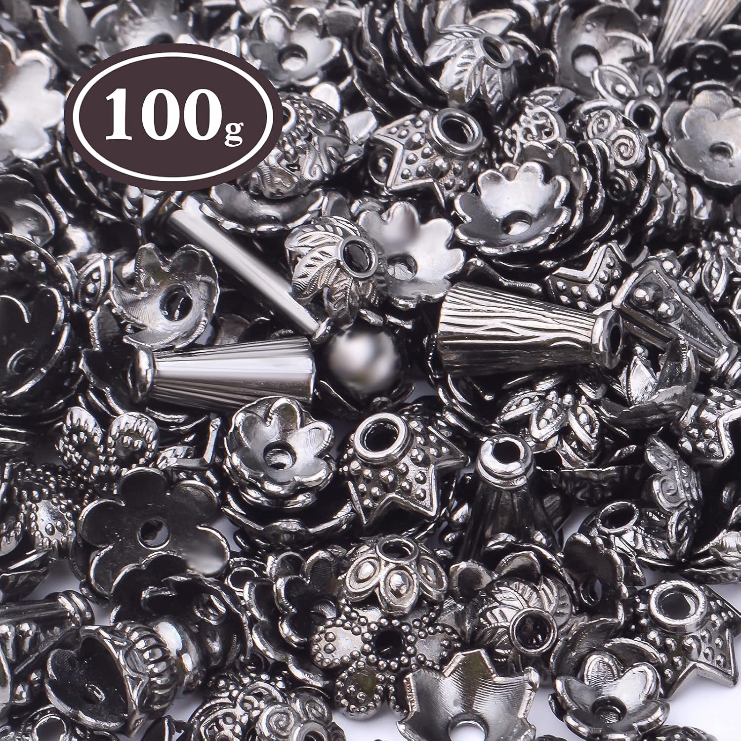 100 Gram Gun Black Flower Bead Caps Tibetan Alloy Mixed Styles Spacer Beads Caps End Caps Craft Supplies for DIY Earrings Bracelet Necklace Jewelry Making Accessories