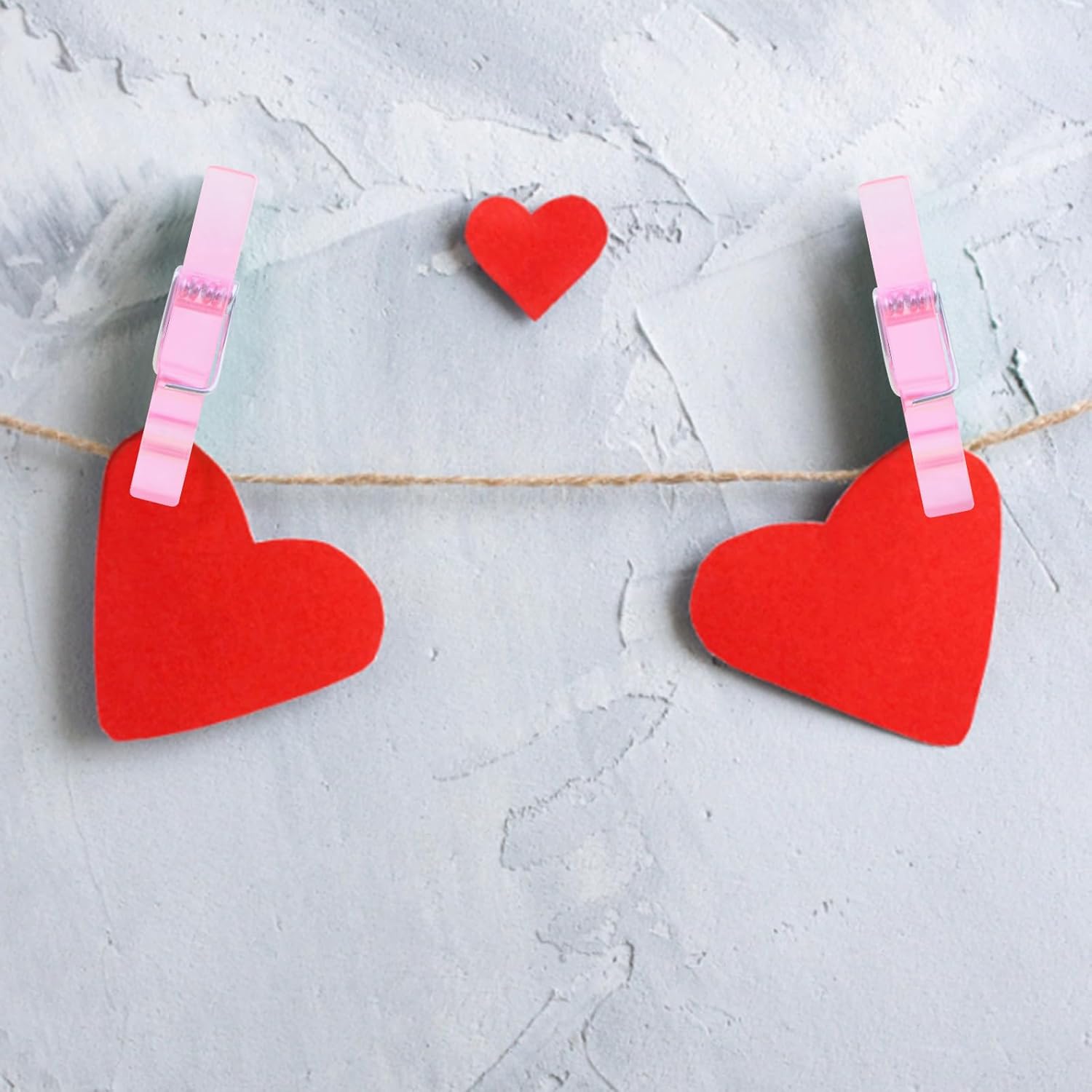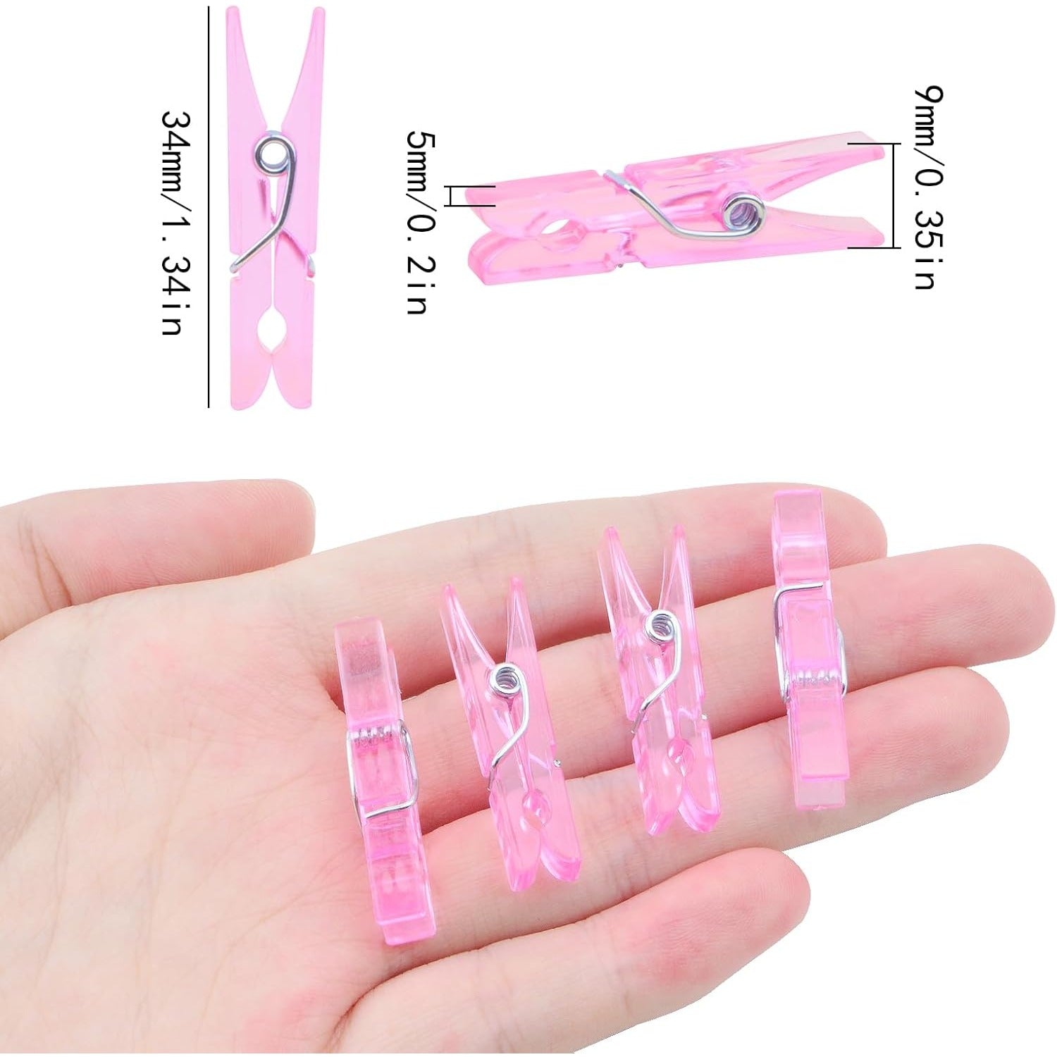 100 Pieces Clear Plastic Clothespins Mini Transparent Craft Clips Pictures Paper Peg Pins for Hanging Photos String Fairy Lights Wedding Party Decor, pink