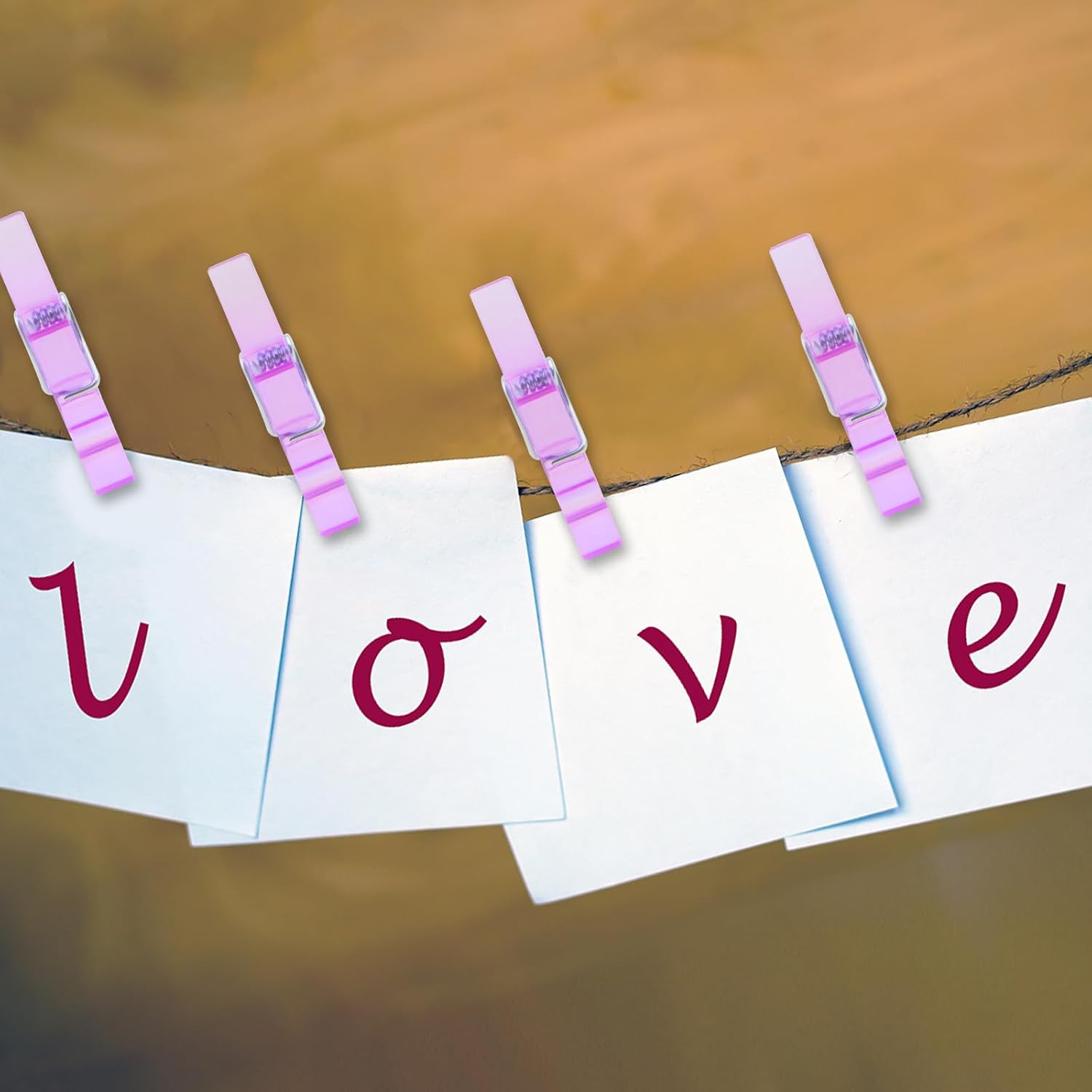 100 Pieces Clear Plastic Clothespins Mini Transparent Craft Clips Pictures Paper Peg Pins for Hanging Photos String Fairy Lights Wedding Party Decor, Purple