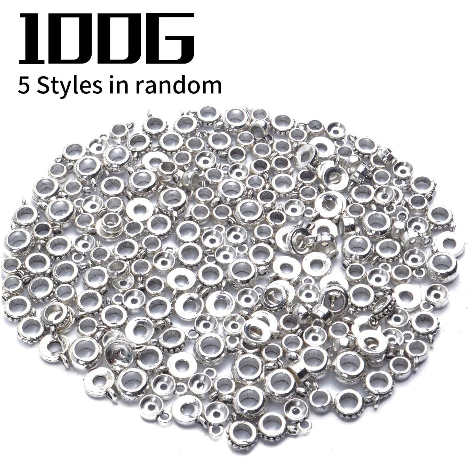 100g (About 100-150pcs) Tibetan Silver Bail Beads Jewelry Connector Bails Beads for Necklace Bracelet Jewelry Making,5 Styles