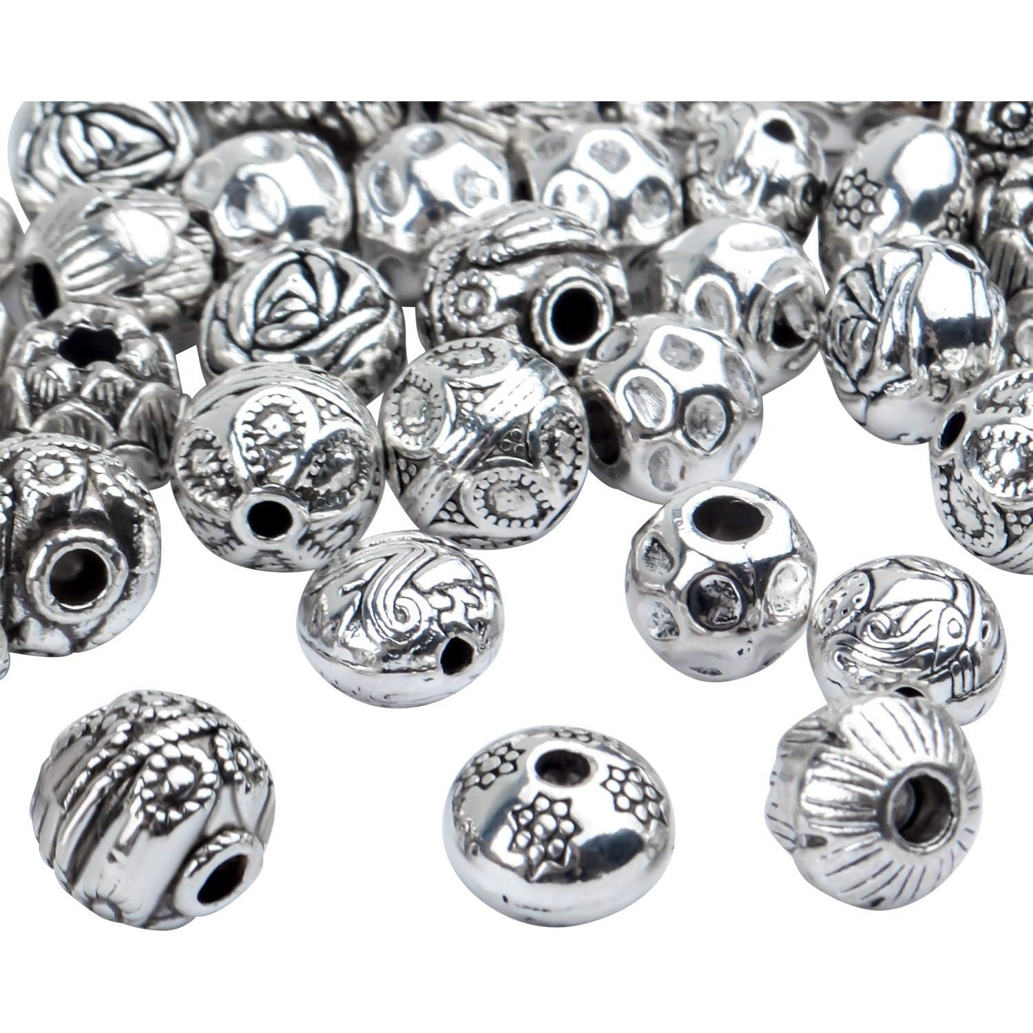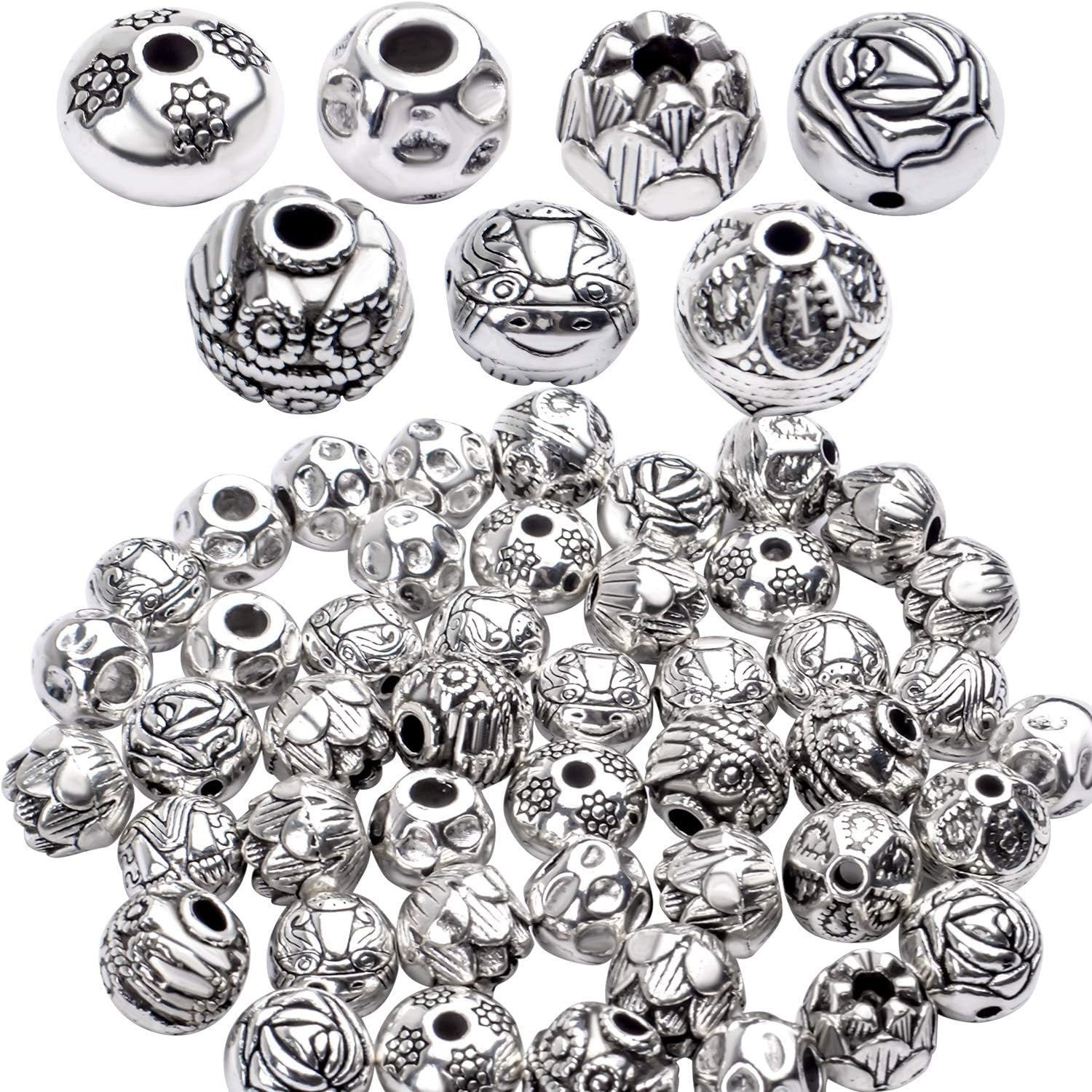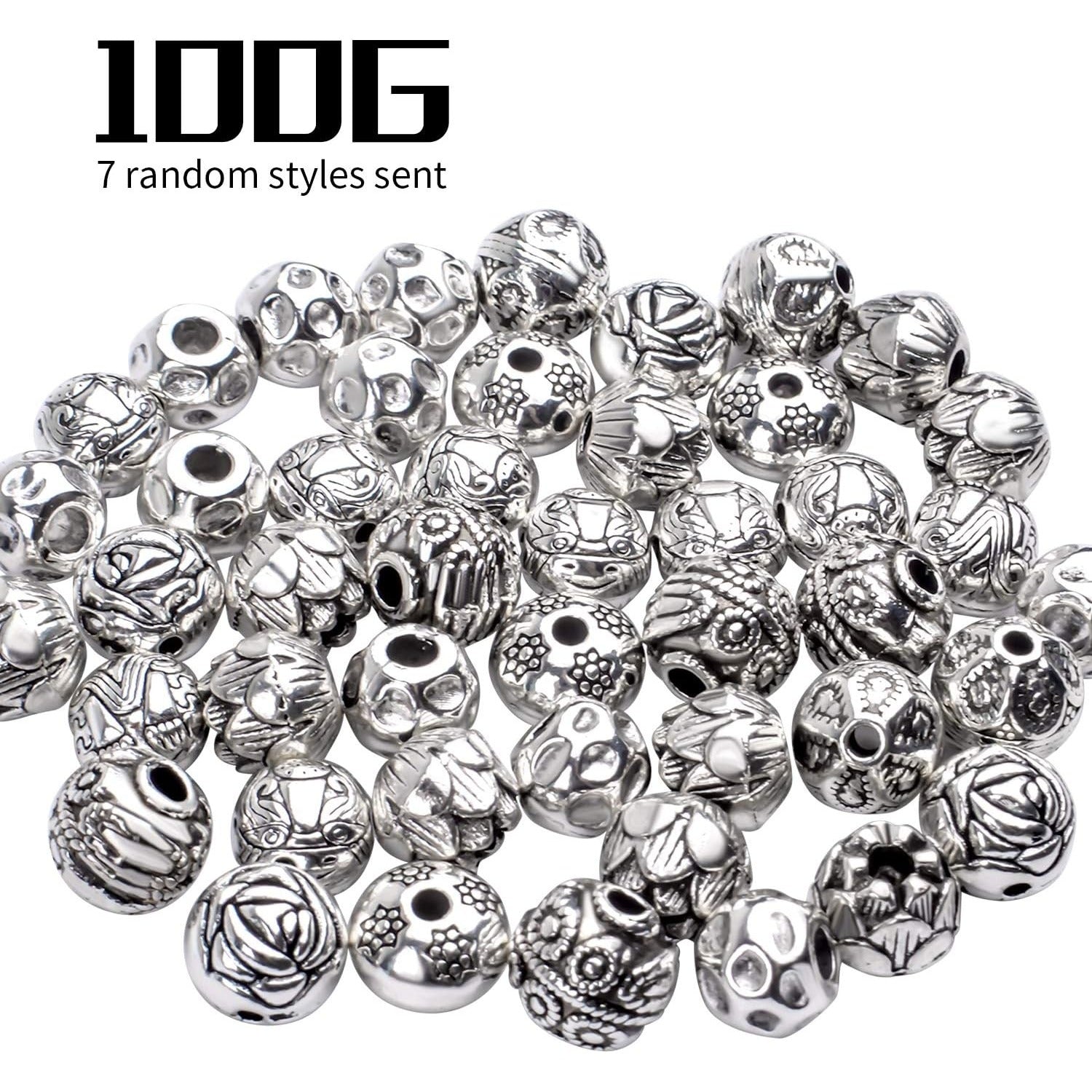 100g (About 40-60pcs) Antique Silver Spacer Beads Small Round Tibetan Loose Beads for Bracelet Necklace Jewelry Making,8-12mm