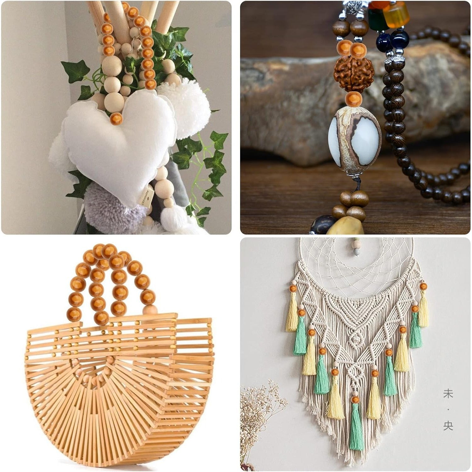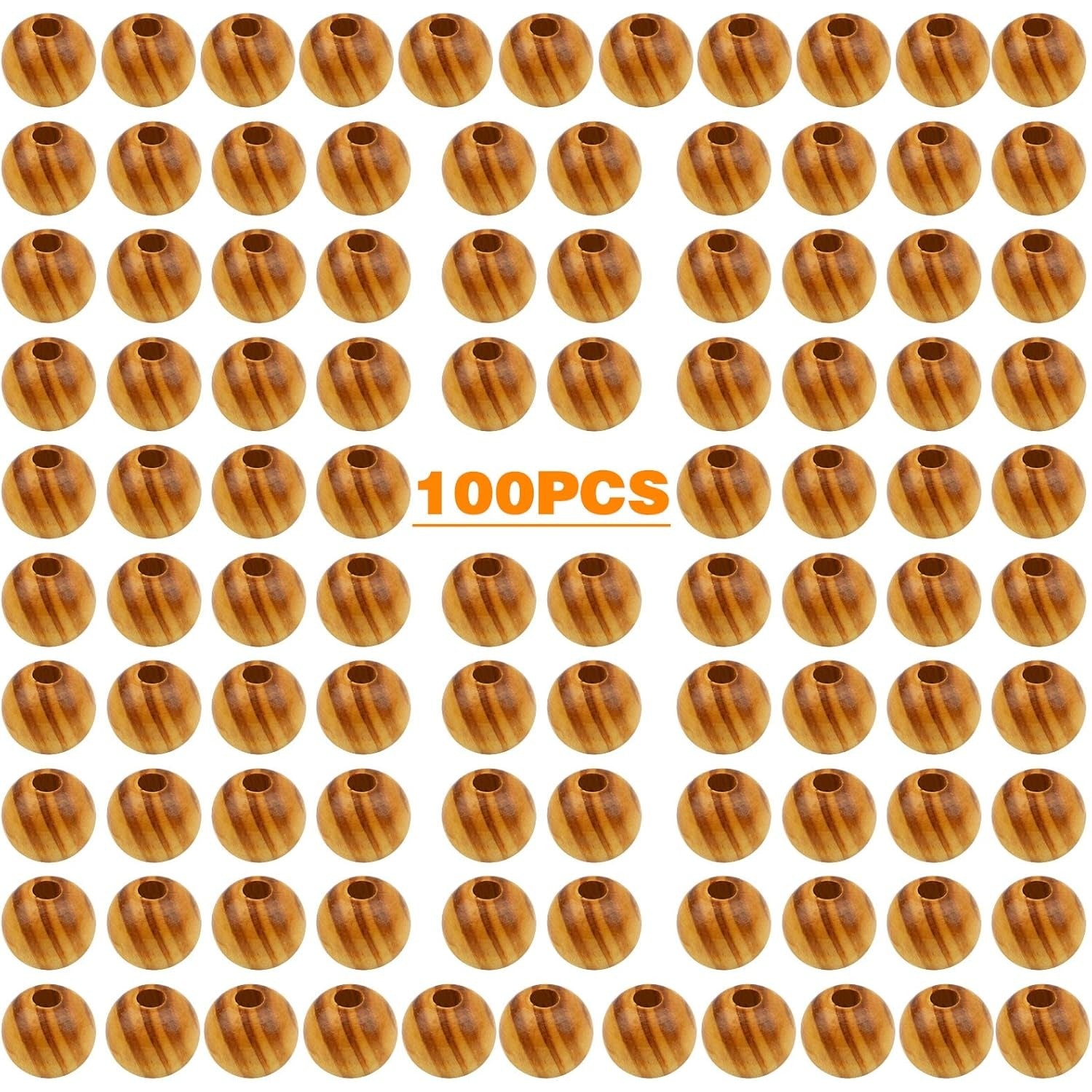 100pcs 14mm Round Natural Wood Macrame Beads - Wooden Loose Craft Spacer Beads for DIY Bracelet Jewelry Making Decoration