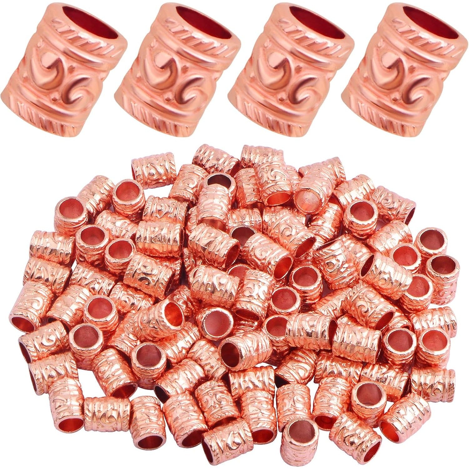 100pcs Alloy Column Spacer Beads European Large Hole(5 mm) Tube Barrel Loose Beads Bulk Metal Spacers Craft Supplies for DIY Bracelet Necklace Earrings Jewelry Making, Rose Golden