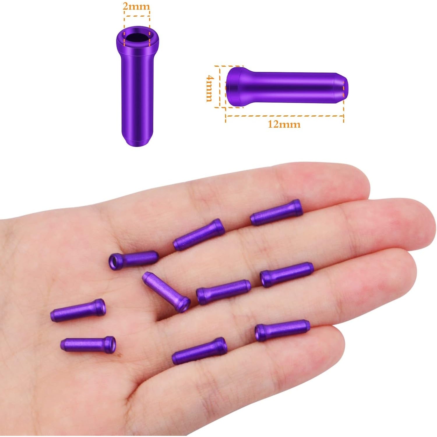 100pcs Aluminum Alloy Cable Ends Caps Cycling Cable Tips Crimps Bikes Brake End Covers Shifter Cable Ends with A Box for Road Bike and Mountain Bicycle, Purple