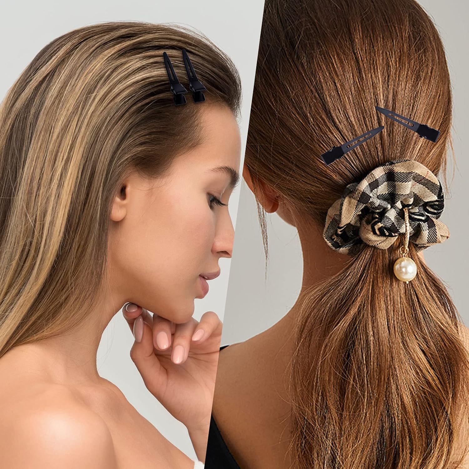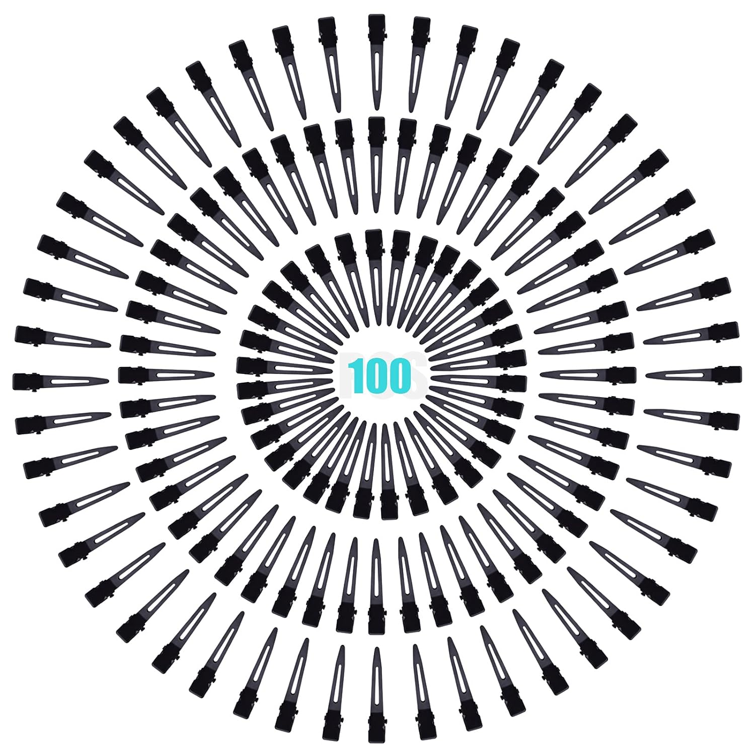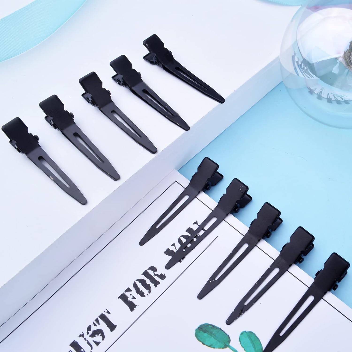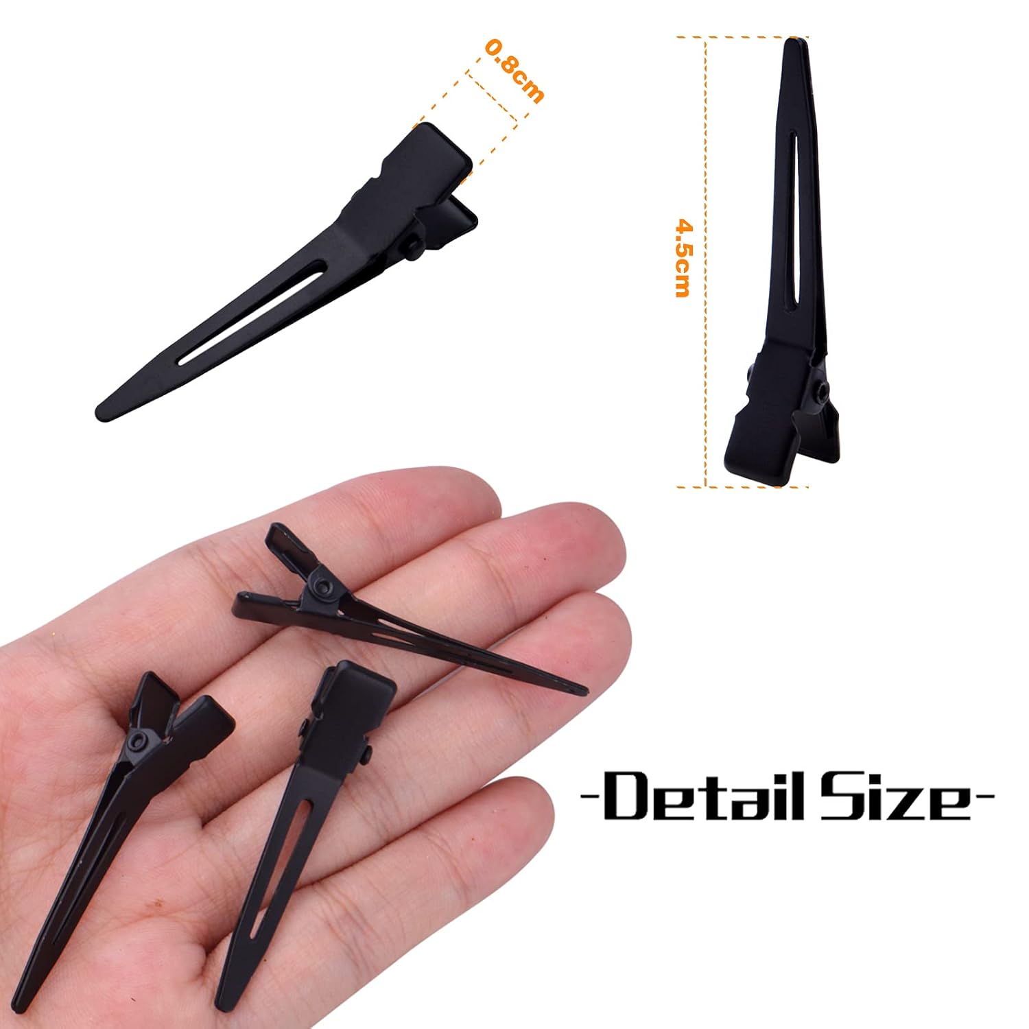 100pcs Black Single Prong Curl Clips Sectioning Clips Metal Alligator Hair Pins Styling Clips for Women Men Hair Extensions Salon Haircut, 4.5 cm x 0.8 cm