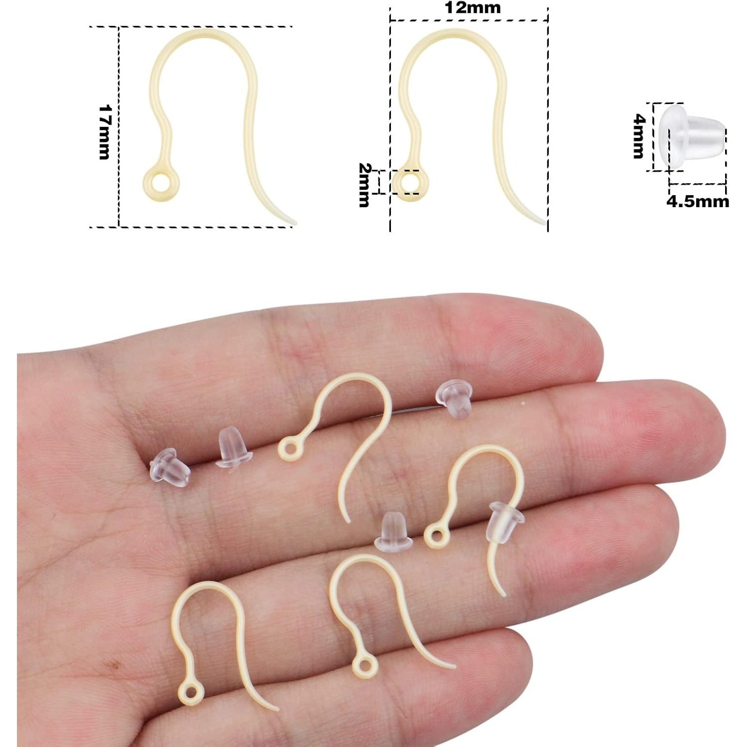 100pcs Golden Plastic Earring Hooks Fish Hooks with Loop and 100pcs Clear Bullet Earring Stoppers for DIY Jewelry Making Party Gifts Crafts Decor