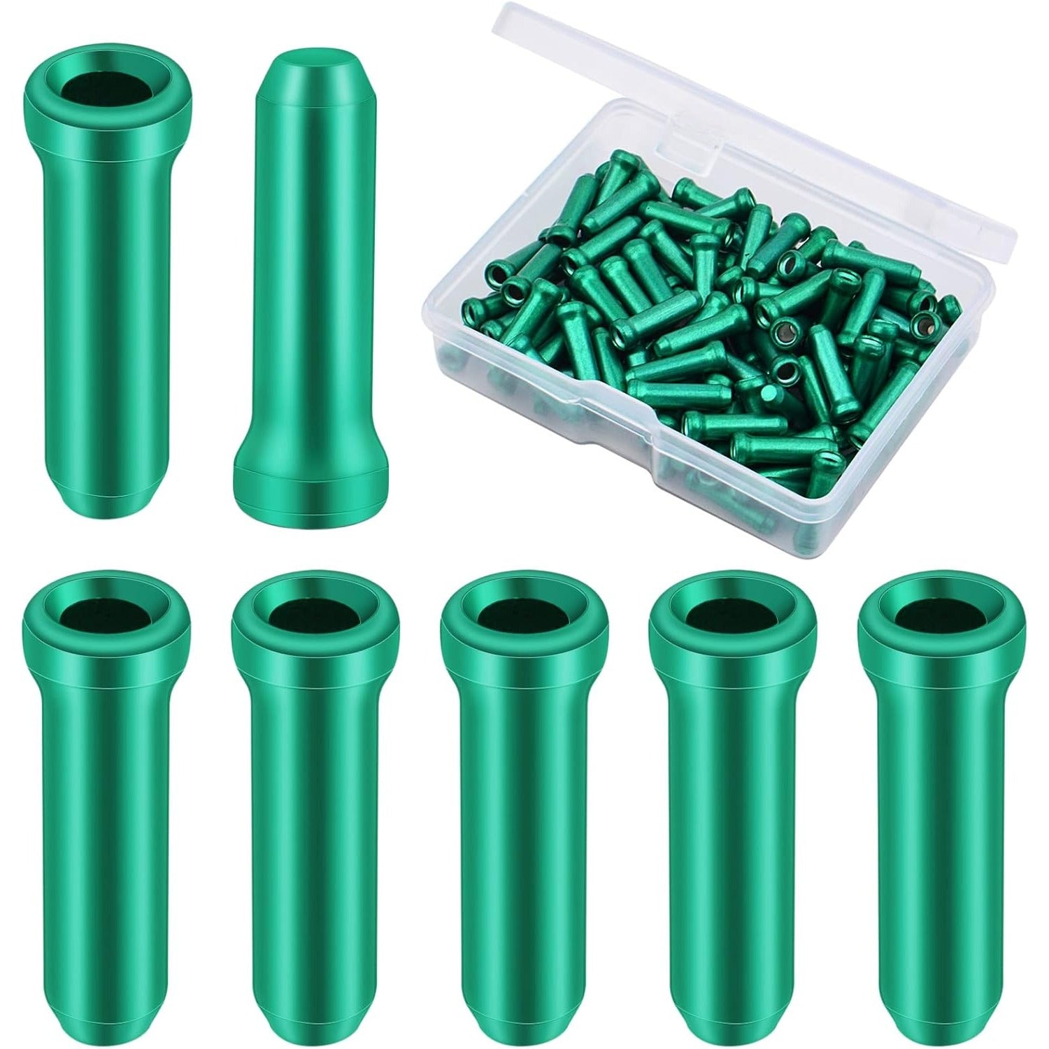 100pcs Green Bicycle Cable Ends Aluminum Alloy Cycling Cable Crimps Bikes Brake Cable Covers Ends Caps with A Box for Road Bike and Mountain Bicycle, 12 mm x 4 mm