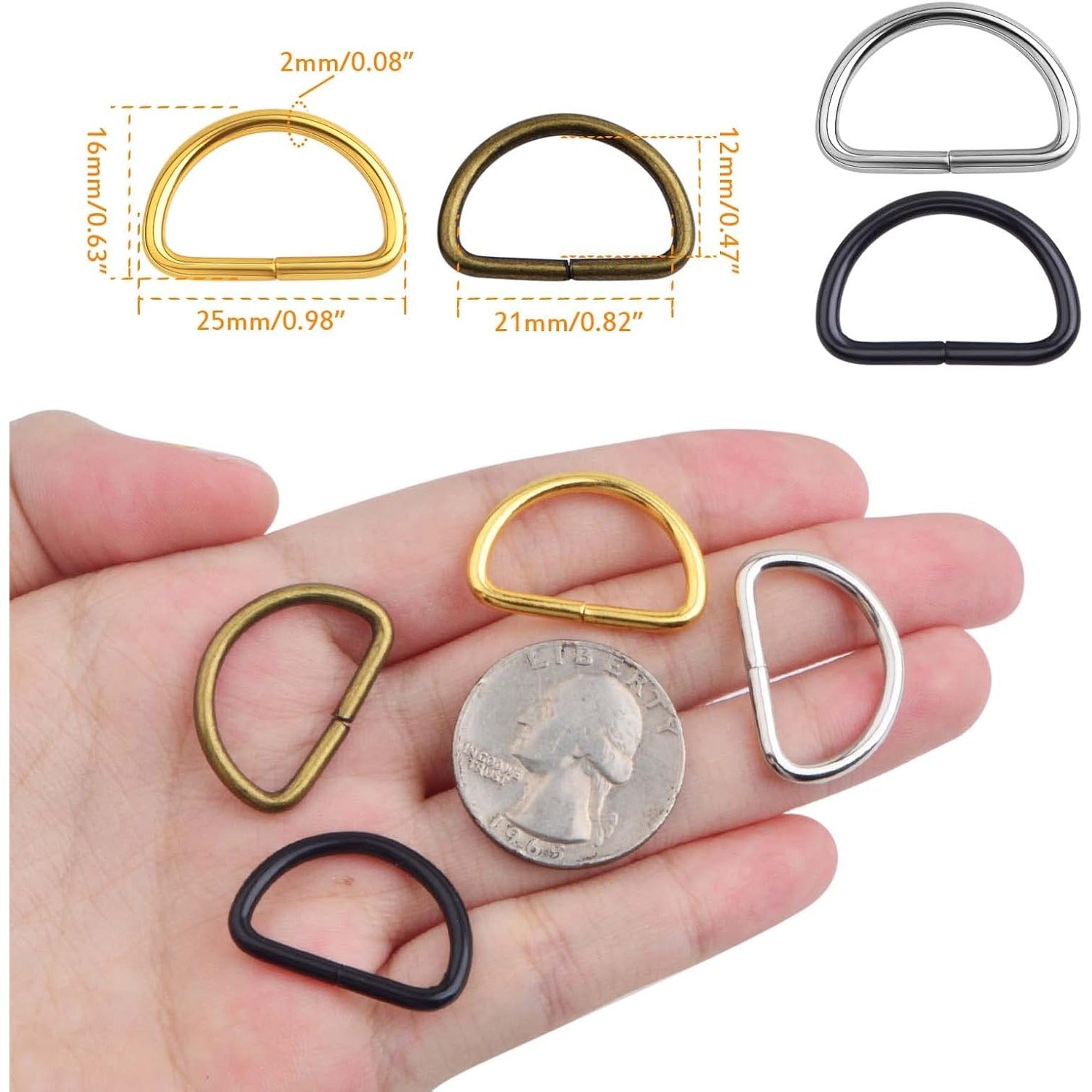 100pcs Heavy Duty Semi-Circular D Rings Multi-Functional Half Round D-Shaped Rings Buckle DIY Accessories for Hardware Bags Backpack Belt Clothing Sewing, 4 Colors
