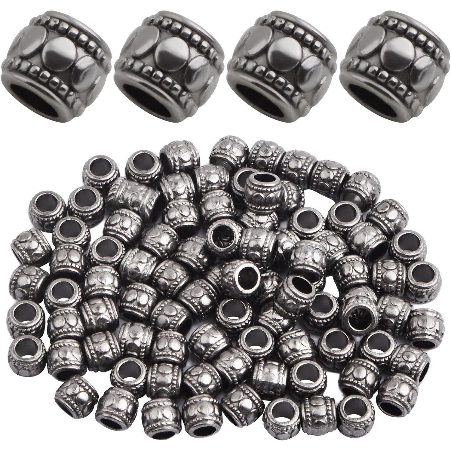 100pcs Large Hole Round Spacer Beads Alloy Column Tube Loose Beads Metal Decorative Bead Charms Handmade Accessories for DIY European Bracelet Jewelry Making Supplies, Gun Black