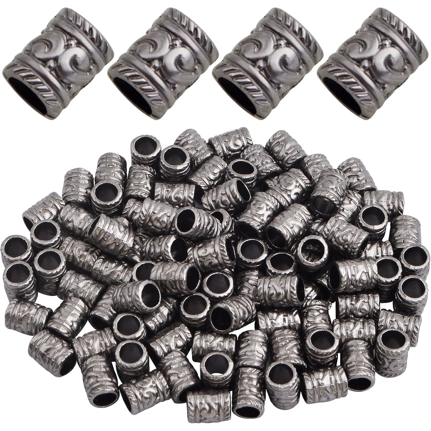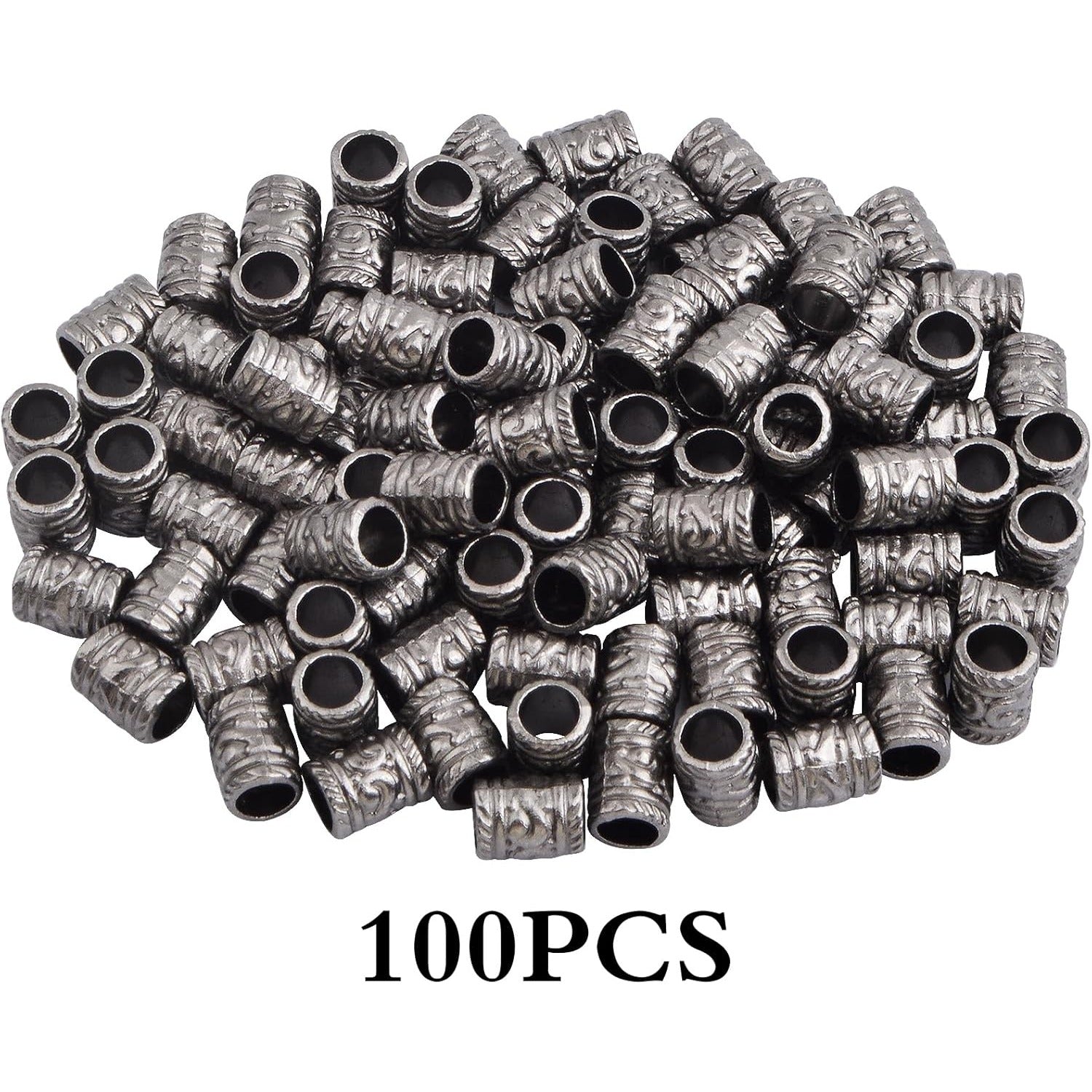 100pcs Large Hole Spacer Beads Alloy Column Loose Beads Gun Black Filigree Pattern Barrel Tube Beads Accessories for DIY European Charms Bracelet Jewelry Making, Hole: 5 mm