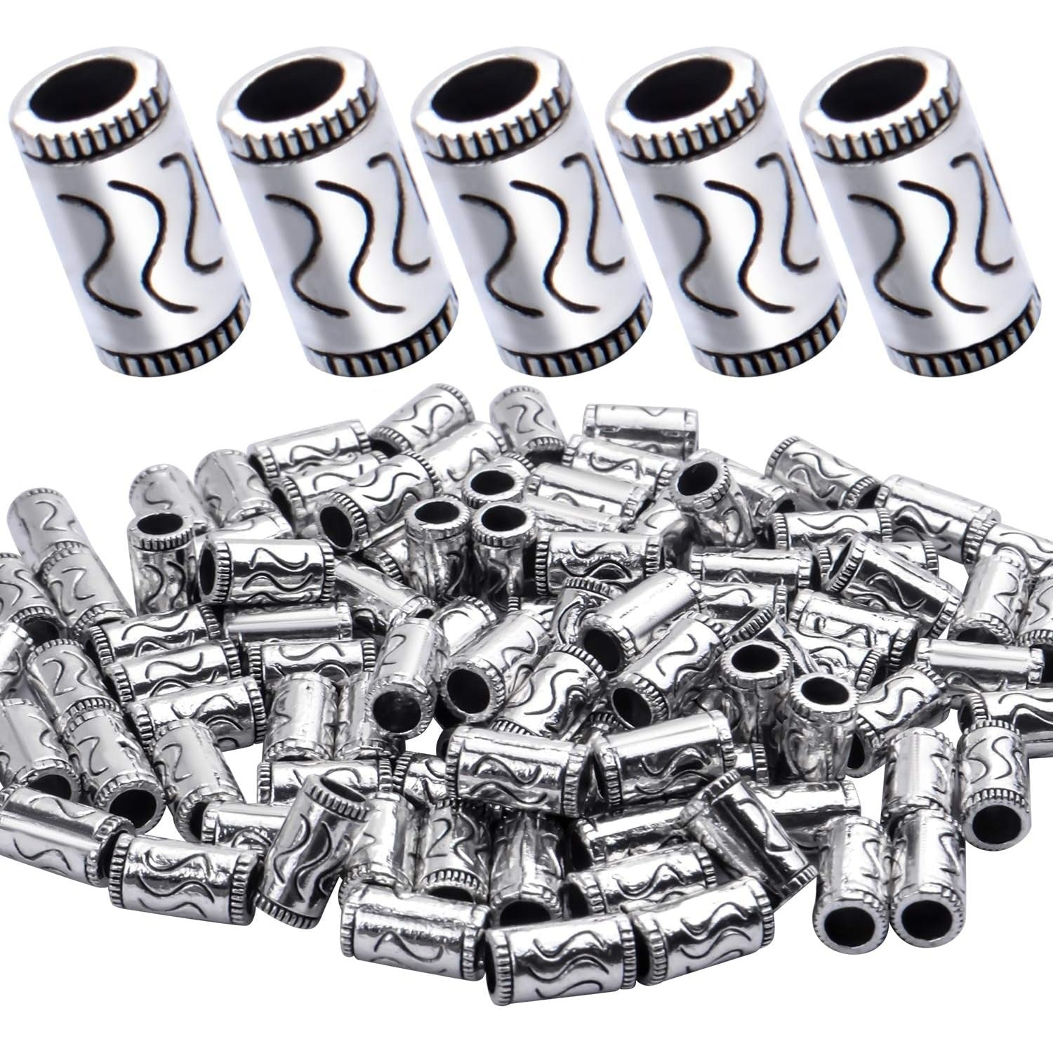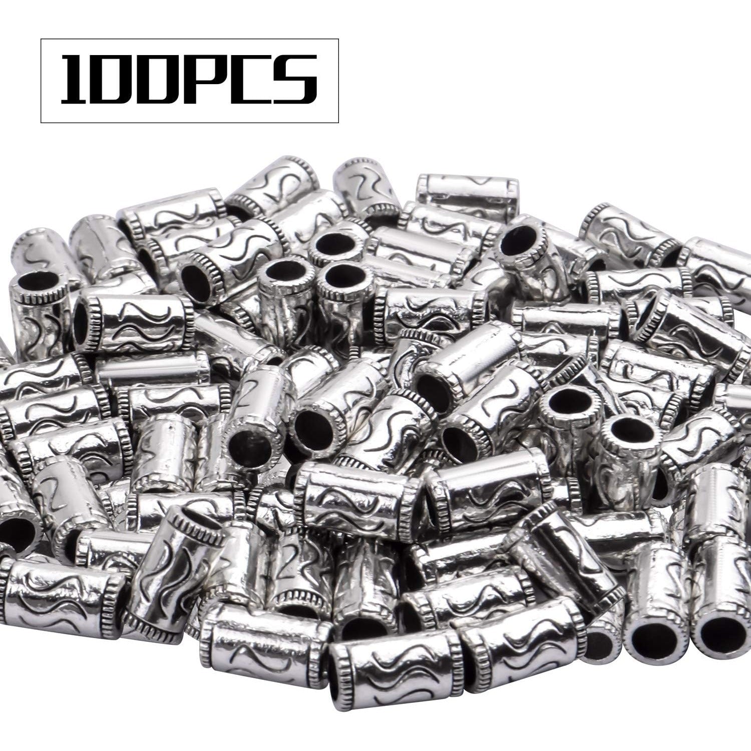 100pcs Tibetan Silver Spacer Beads Alloy Tube Metal Spacers European Large Hole Beads Charms for DIY Necklace Bracelets
