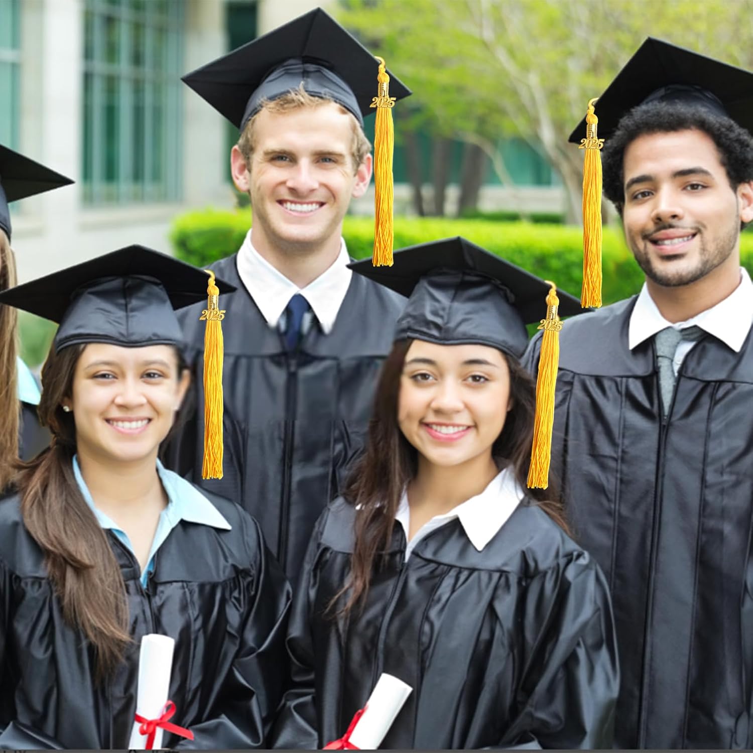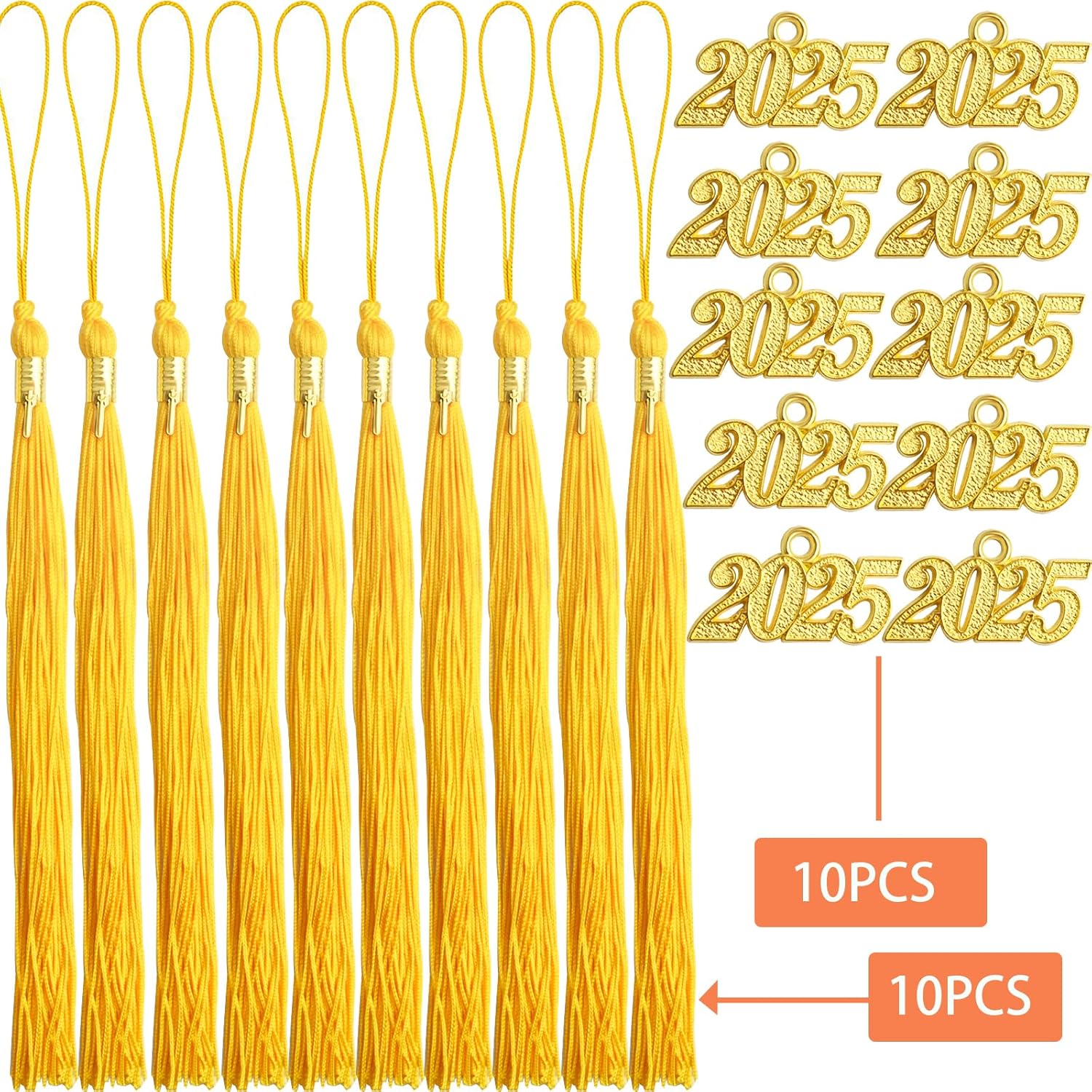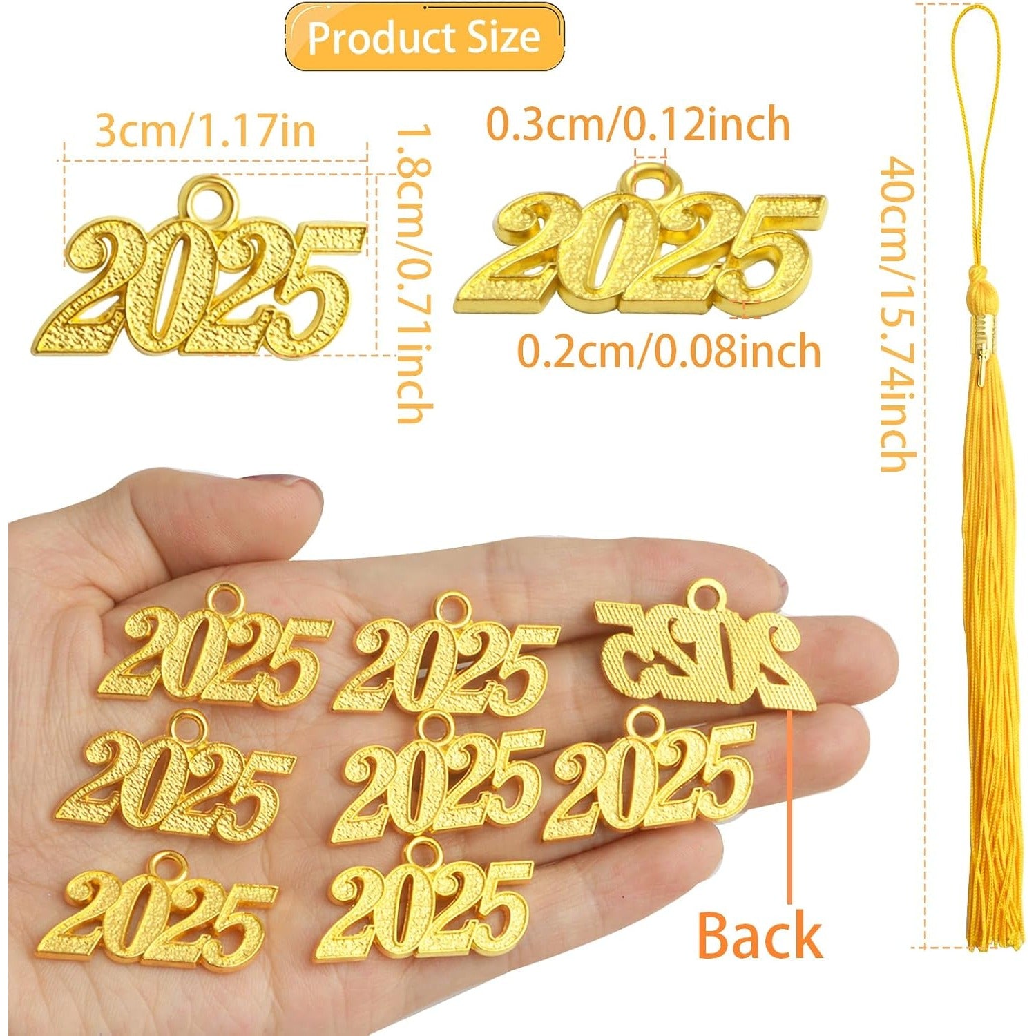 10pcs Yellow Graduation Tassels Grad Cap Decors with 10pcs Golden 2025 Year Charm Pendants for 2025 Graduates Graduation Hats Ceremonies Parties Decorations Souvenirs