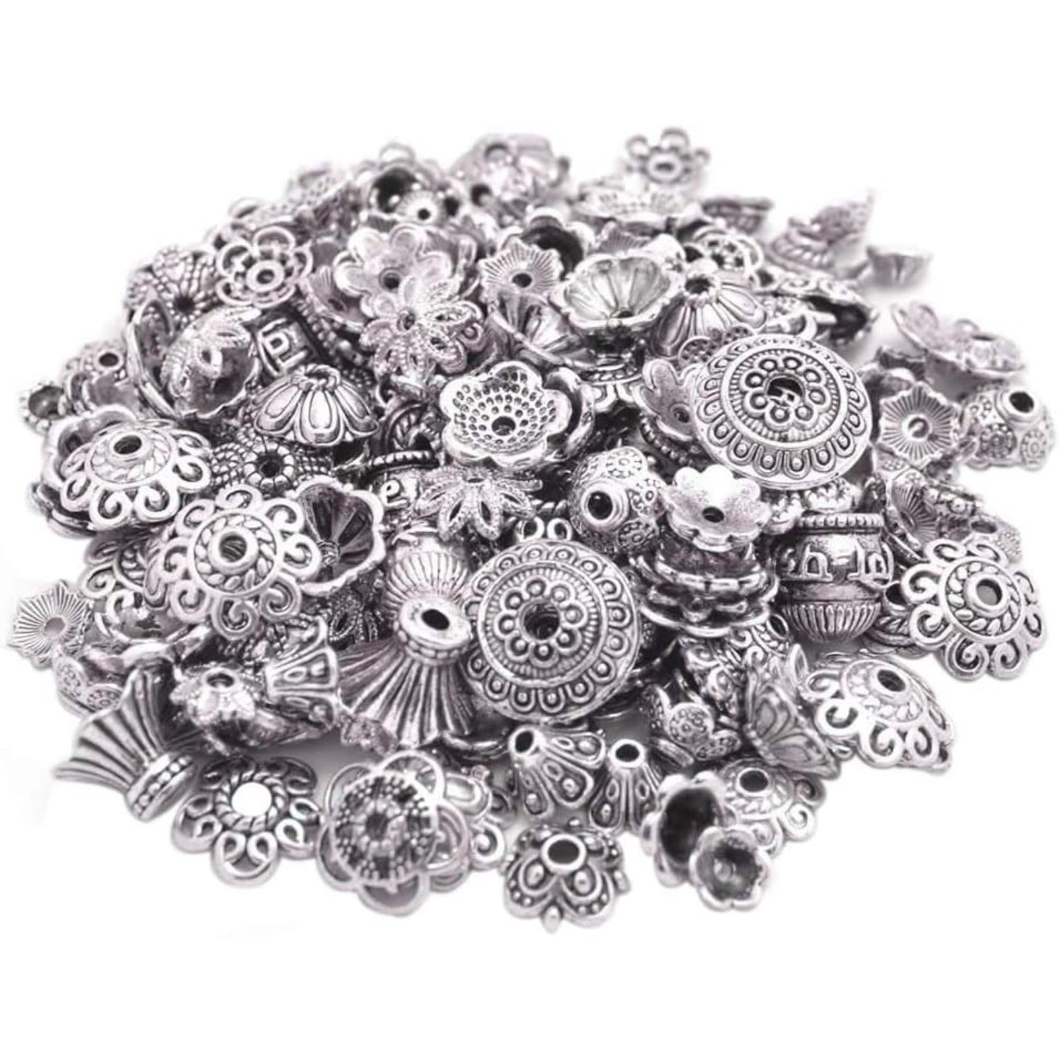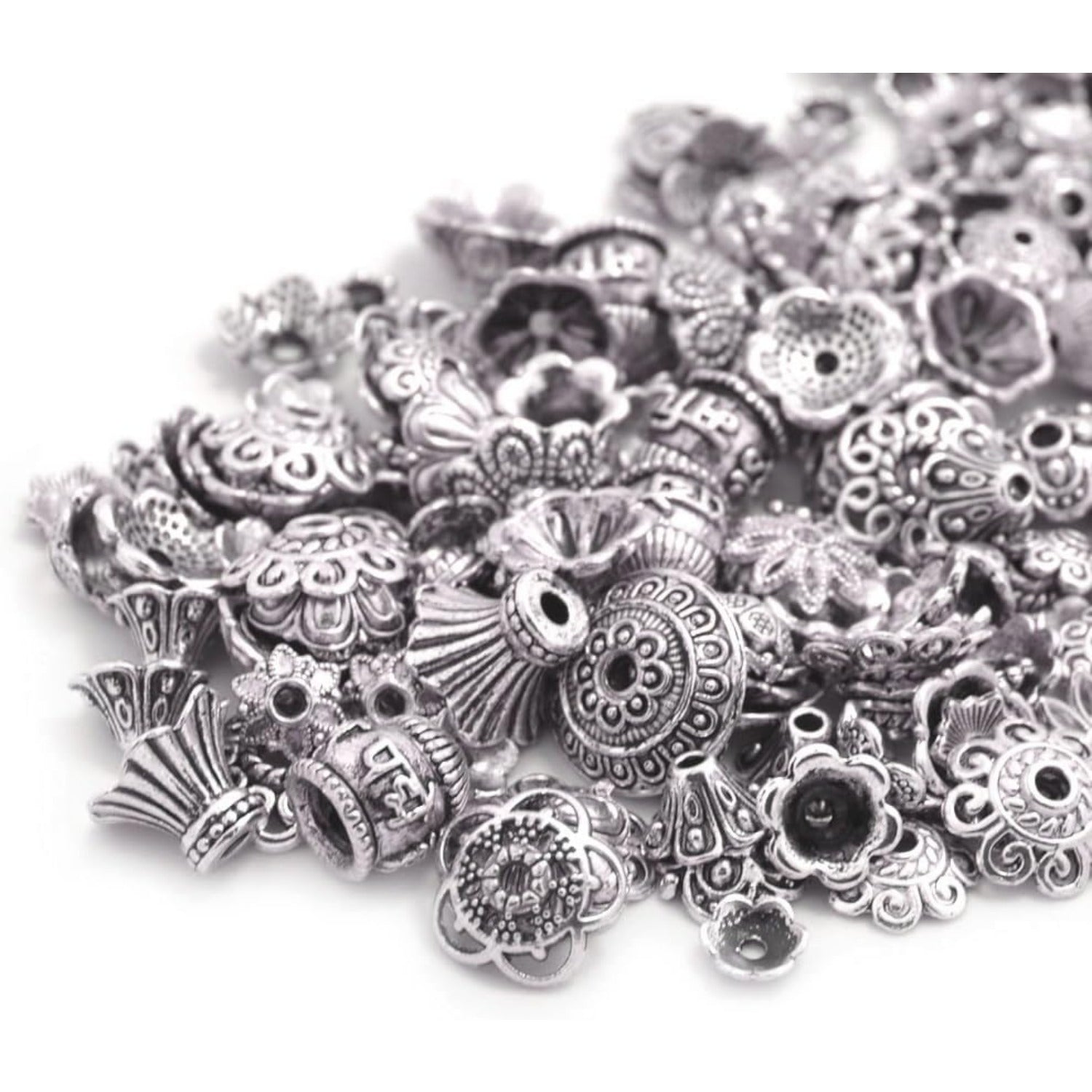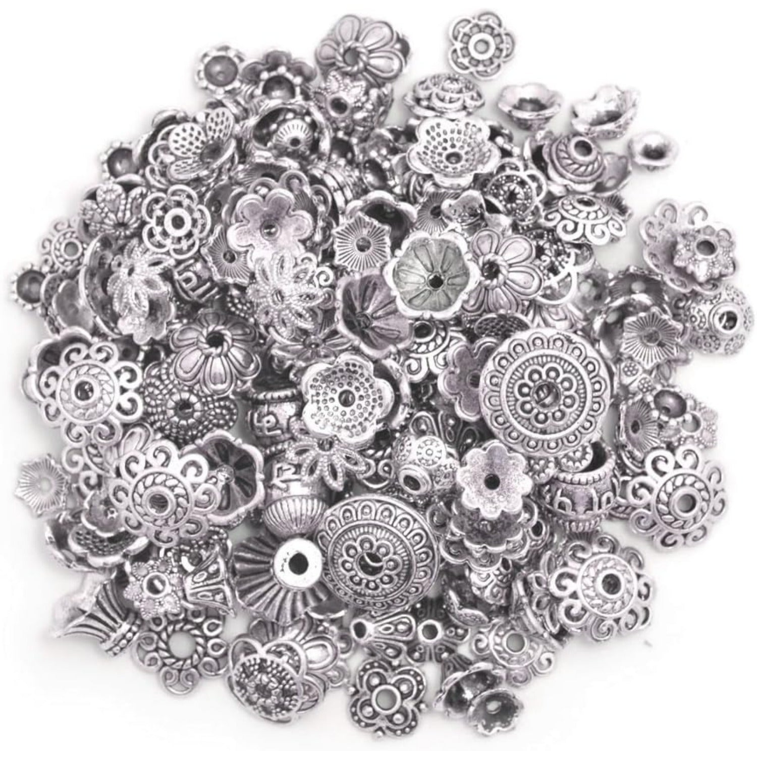 160-210pcs Bali Style Jewelry Making Metal Bead Caps Deluxe New Mix, 100 Gram,Tibetan Silver