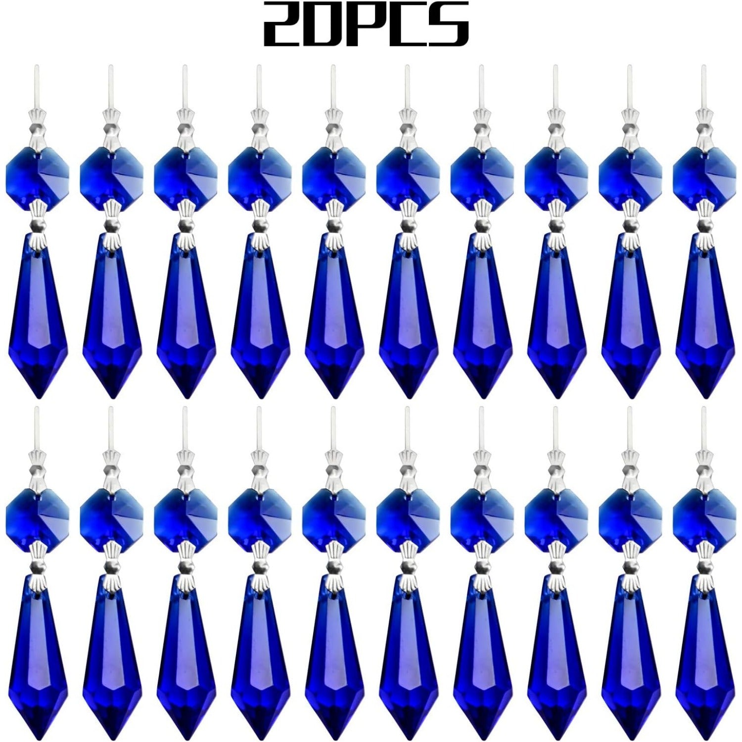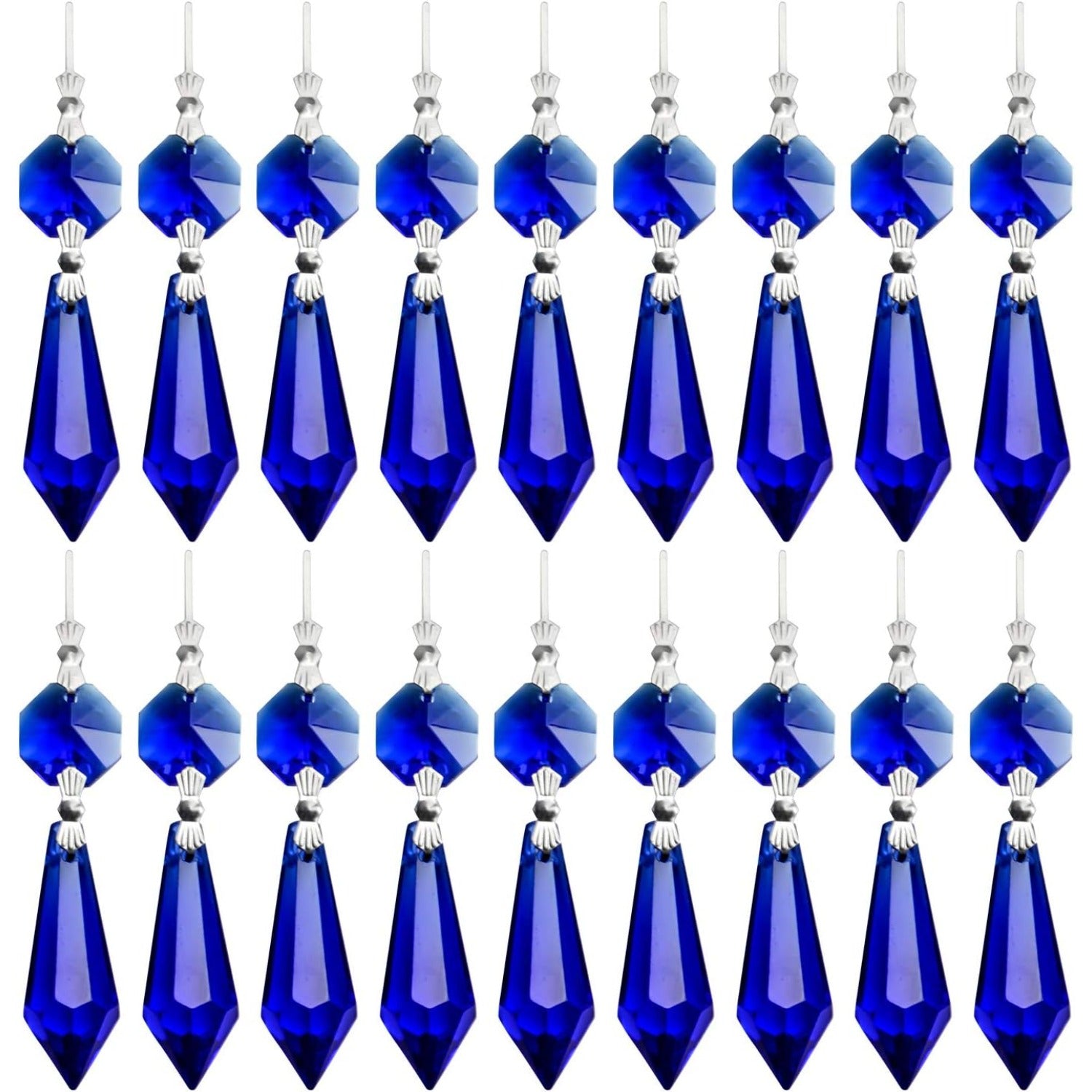 20 Pieces Chandelier Icicle Crystal U-Drop Prisms Lamp Parts Glass Pendants Beads for Wedding, Party or Holiday Decoration, 37mm, Blue