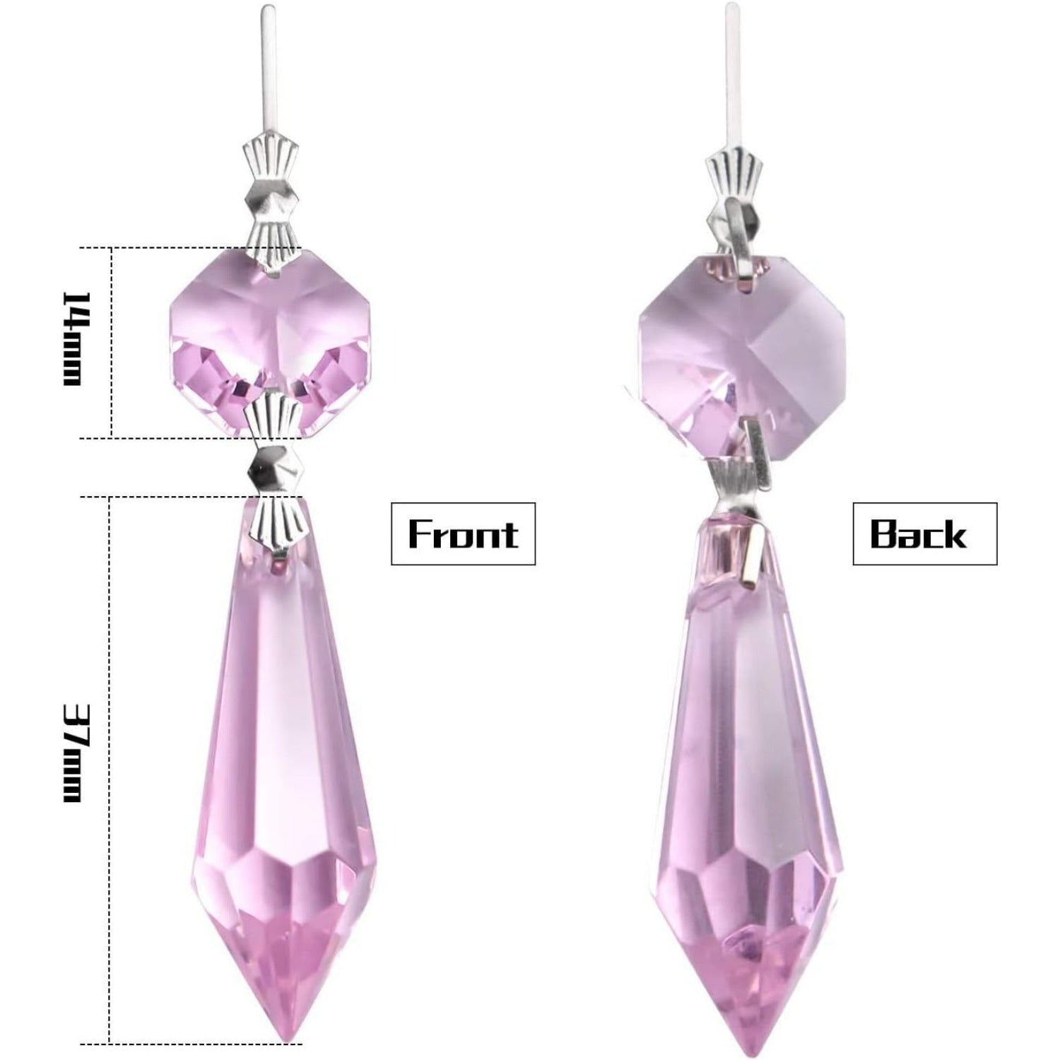 20 Pieces Replacement Pink Chandelier Icicle Crystal Prisms Octogan Crystal Bead for Lamp Decoration,37mm,Silver Bow Tie Connectors