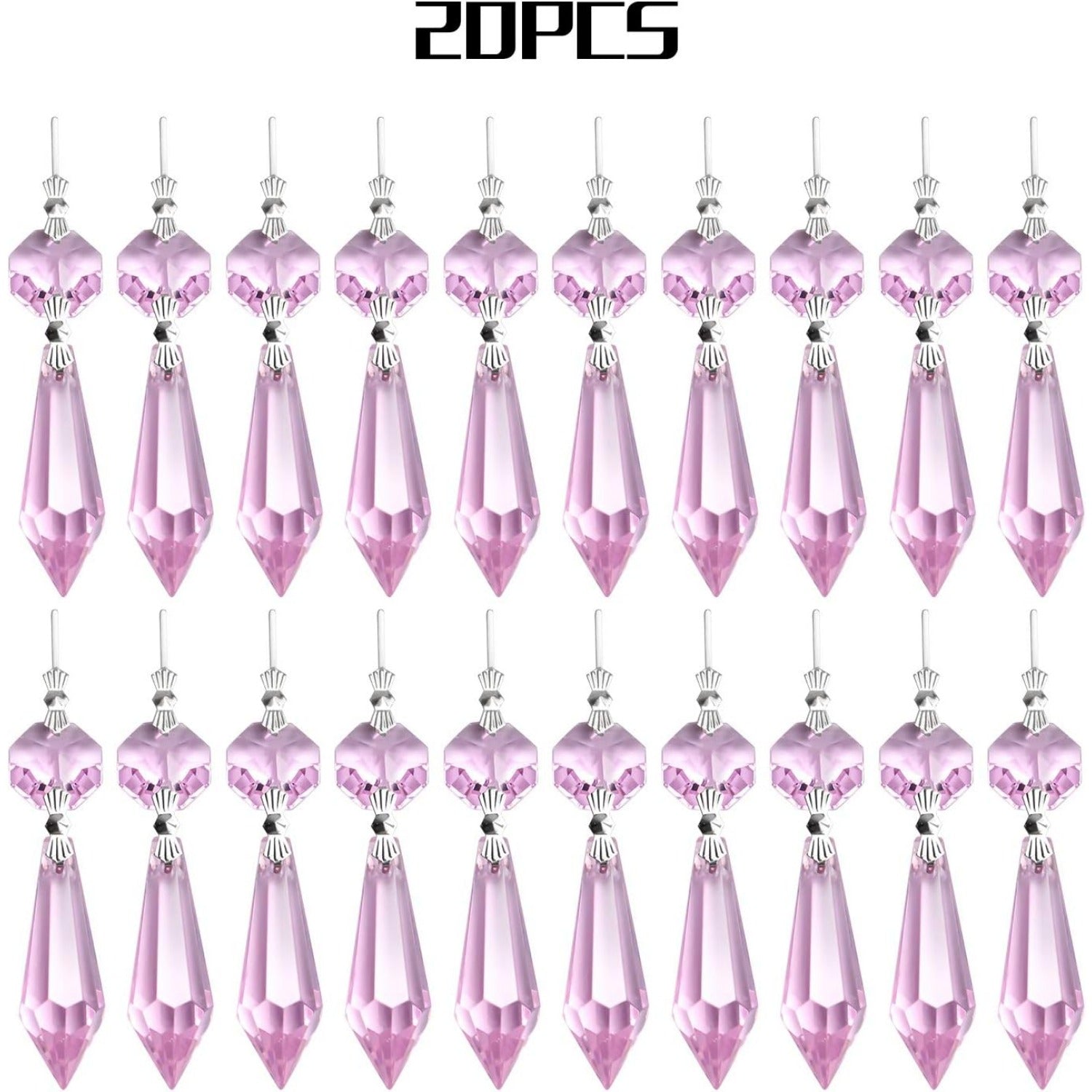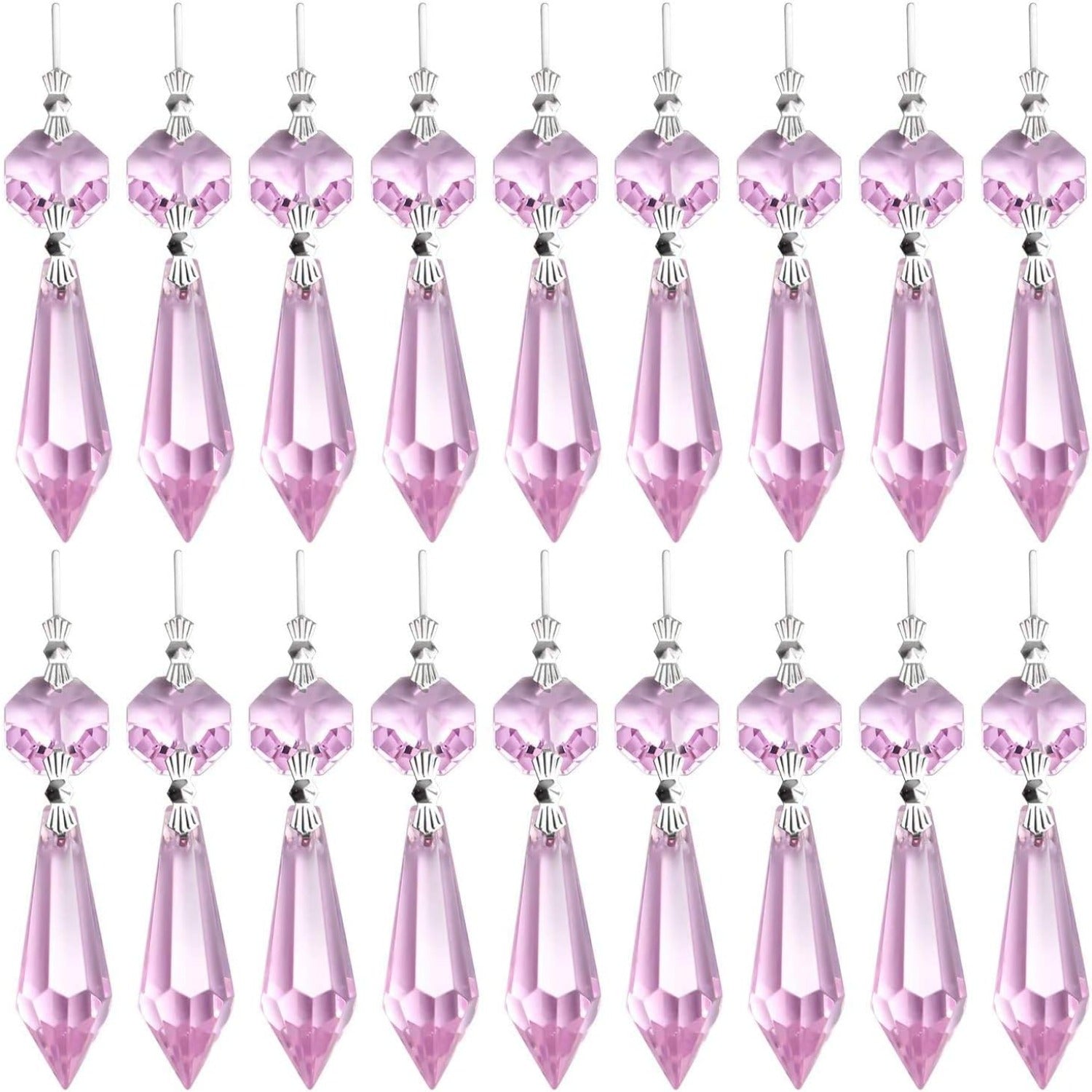 20 Pieces Chandelier Icicle Crystal U-Drop Prisms Lamp Parts Glass Pendants Beads for Wedding, Party or Holiday Decoration, 37mm, Pink