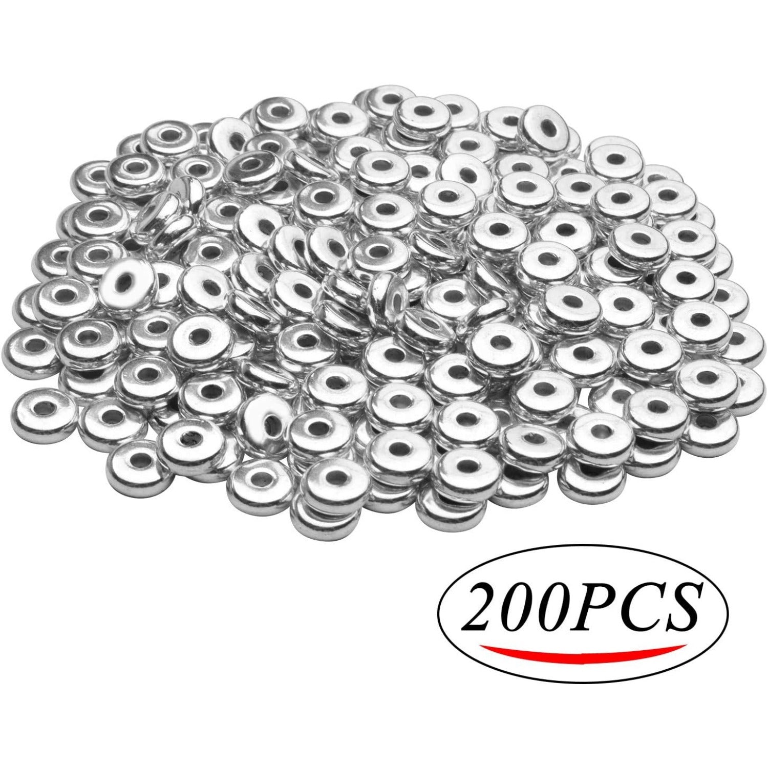 200pcs 8mm Flat Round Rondelle Spacer Beads Disc Spacers Loose Beads Jewelry Metal Spacers for DIY Bracelet Necklace Crafts,Silver