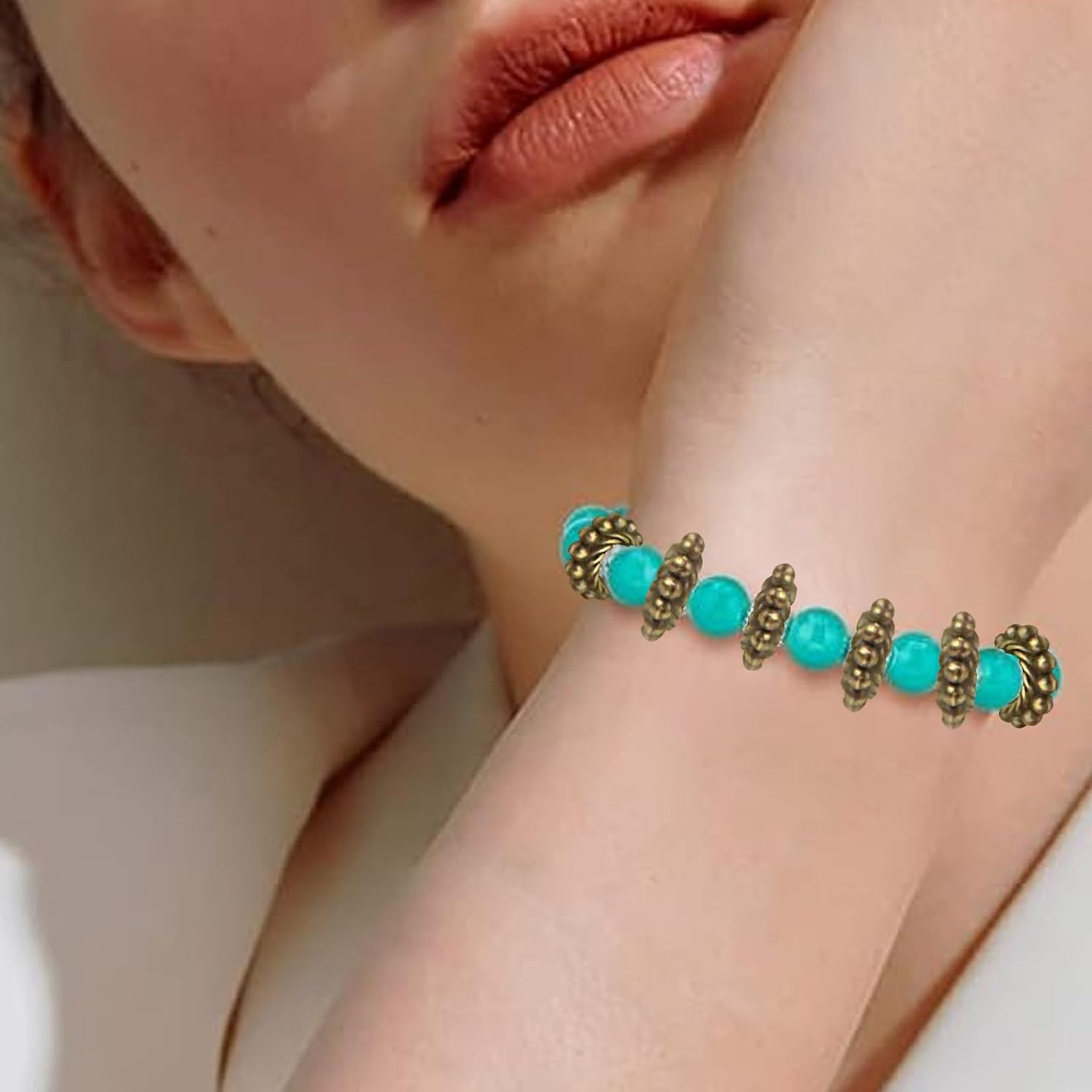 200pcs Tibetan Rondelle Spacer Beads Vintage Alloy Round Gear Loose Bead Spacers Bulk Jewelry Accessories for DIY Bracelets Necklace Earrings Craft Supplies, Antique Bronze