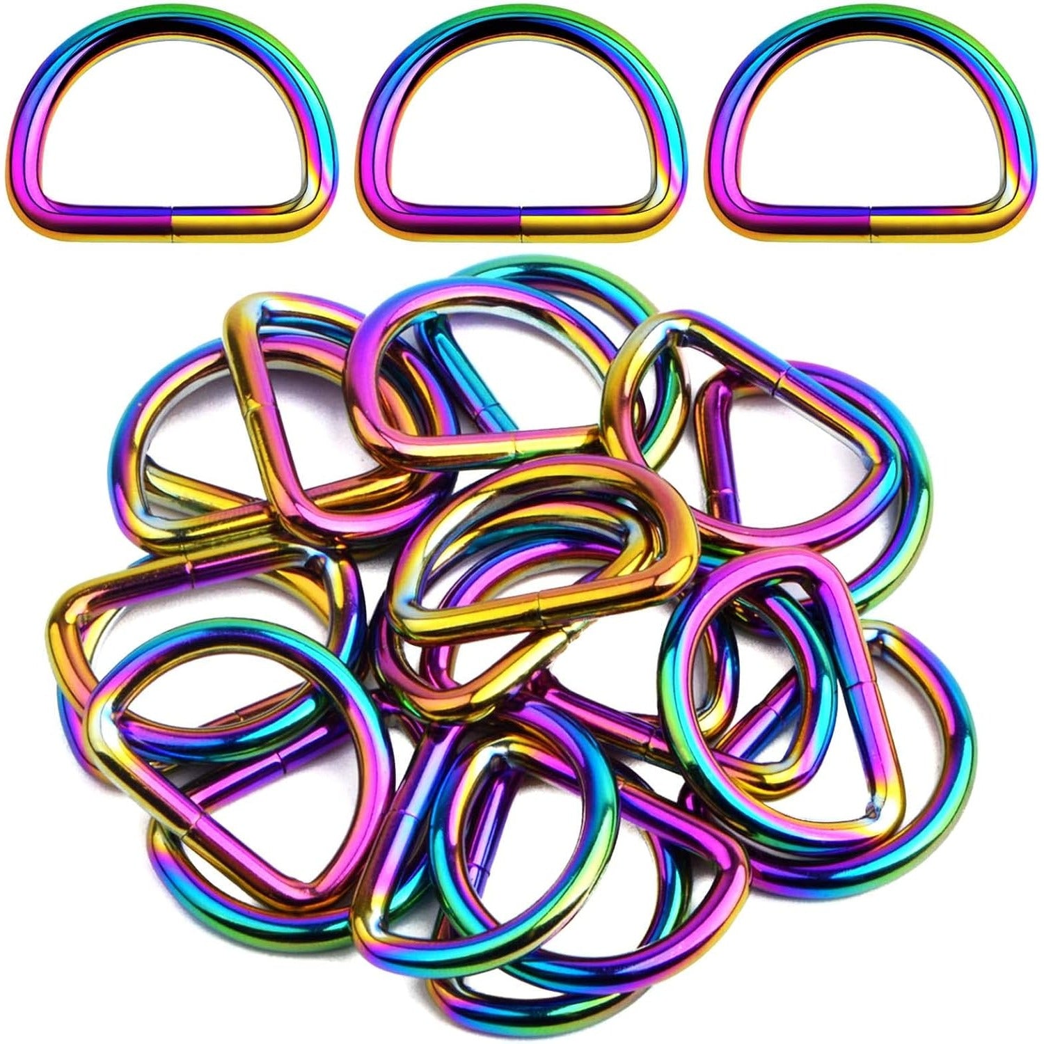 20pcs Metal Semi-Circular D Rings Multipurpose Half Round D-Shaped Rings Buckle DIY Accessories for Hardware Luggage Bags Backpack Belt Clothing Projects, Rainbow Color
