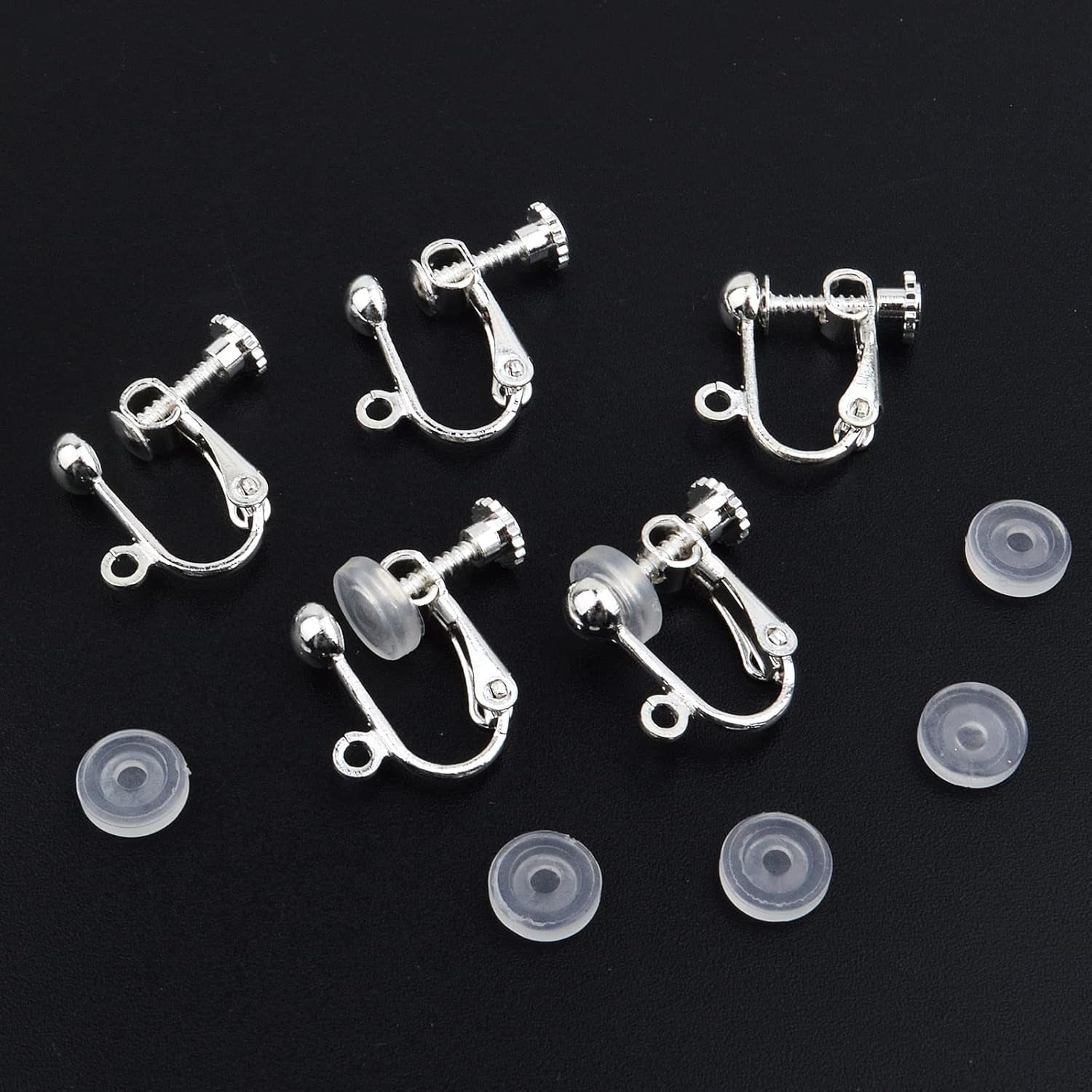 24pcs Clip-on Earring Converters Brass Screw Back Earwire Non Pierced Earring Components with Loop and 24pcs Anti-Pain Ear Pads for DIY Jewelry Making, Bright Silver
