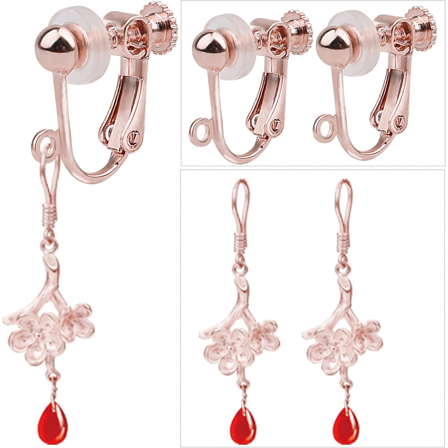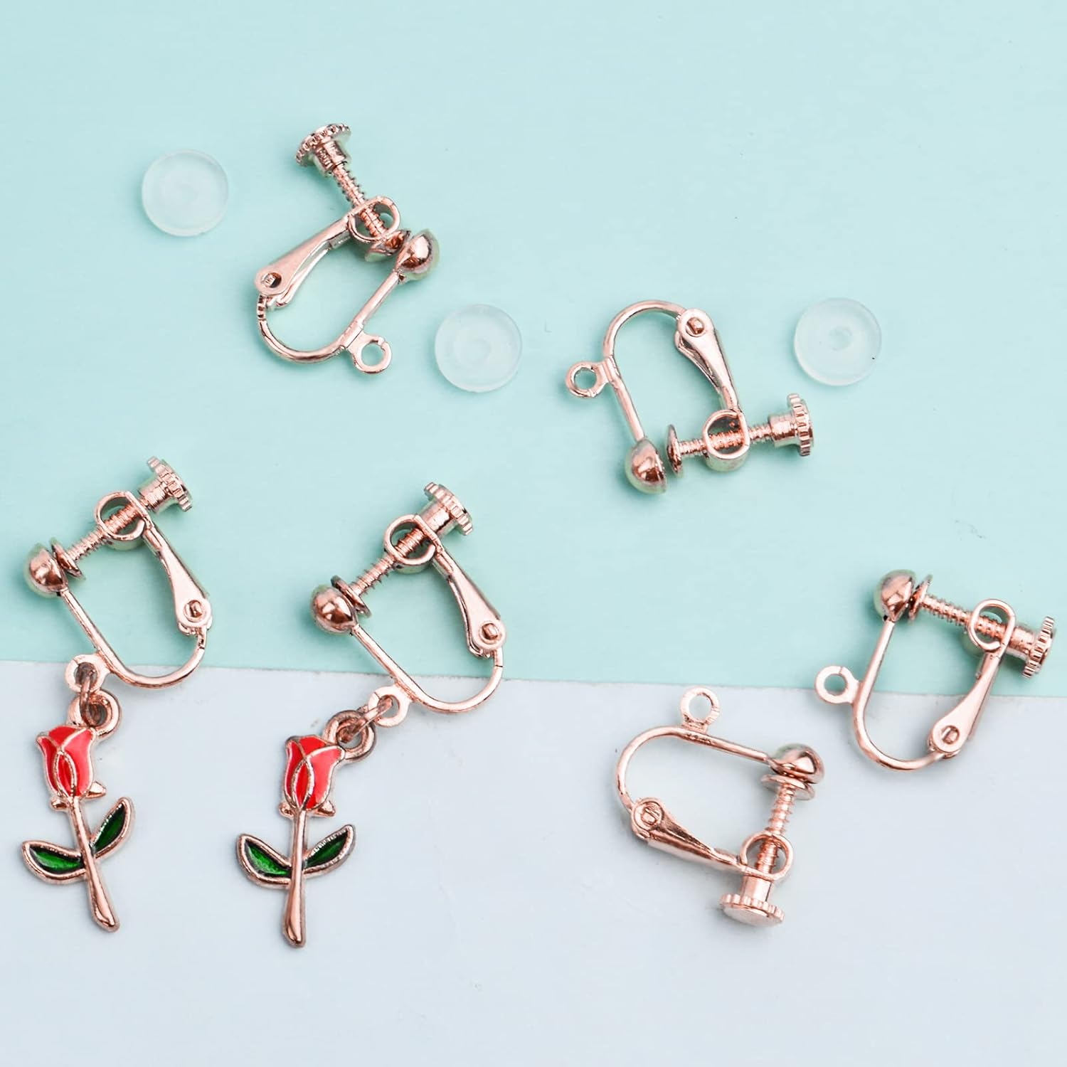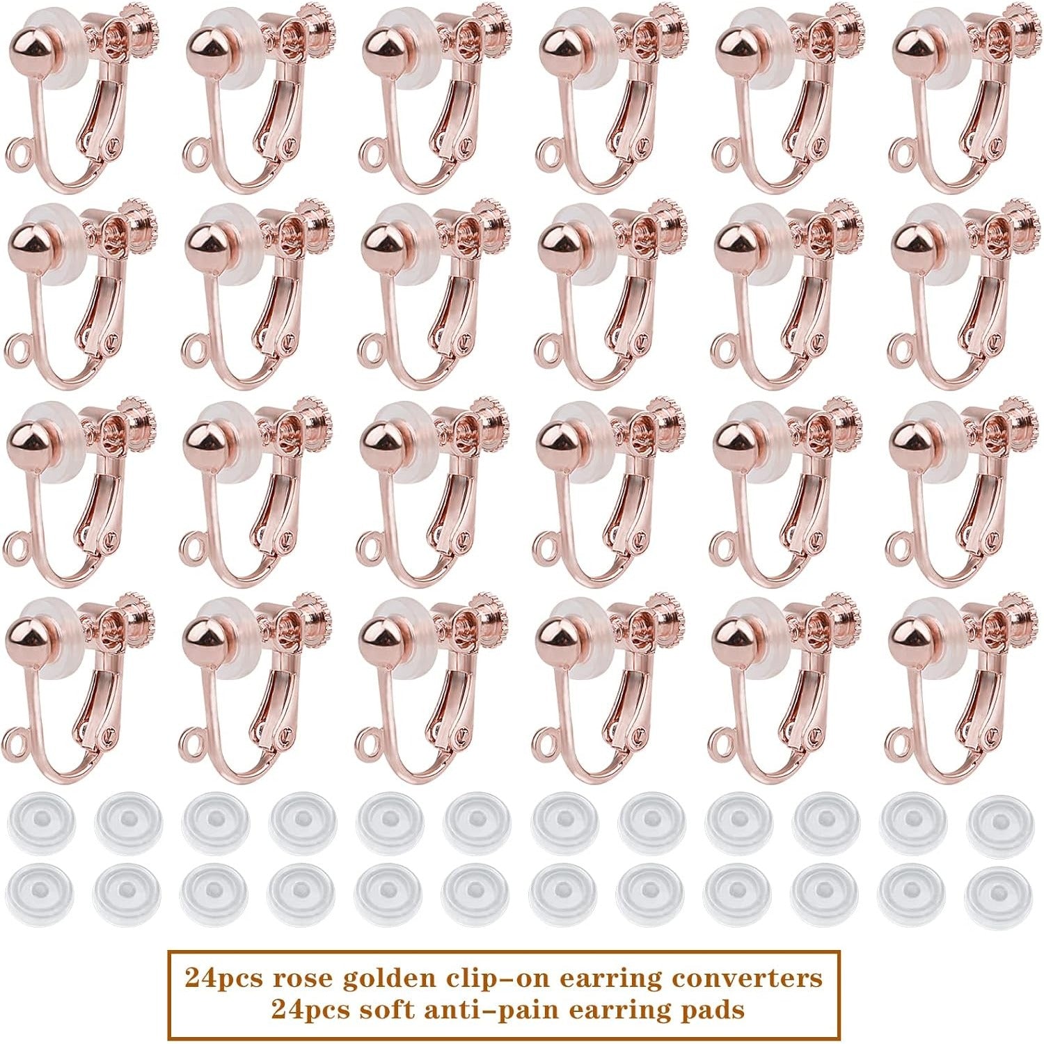 24pcs Clip-on Earring Converters Components Brass Screw Back Ear Wire Earring Findings with Loop and 24pcs Soft Earring Cushions for Non Pierced Ears, Rose Golden