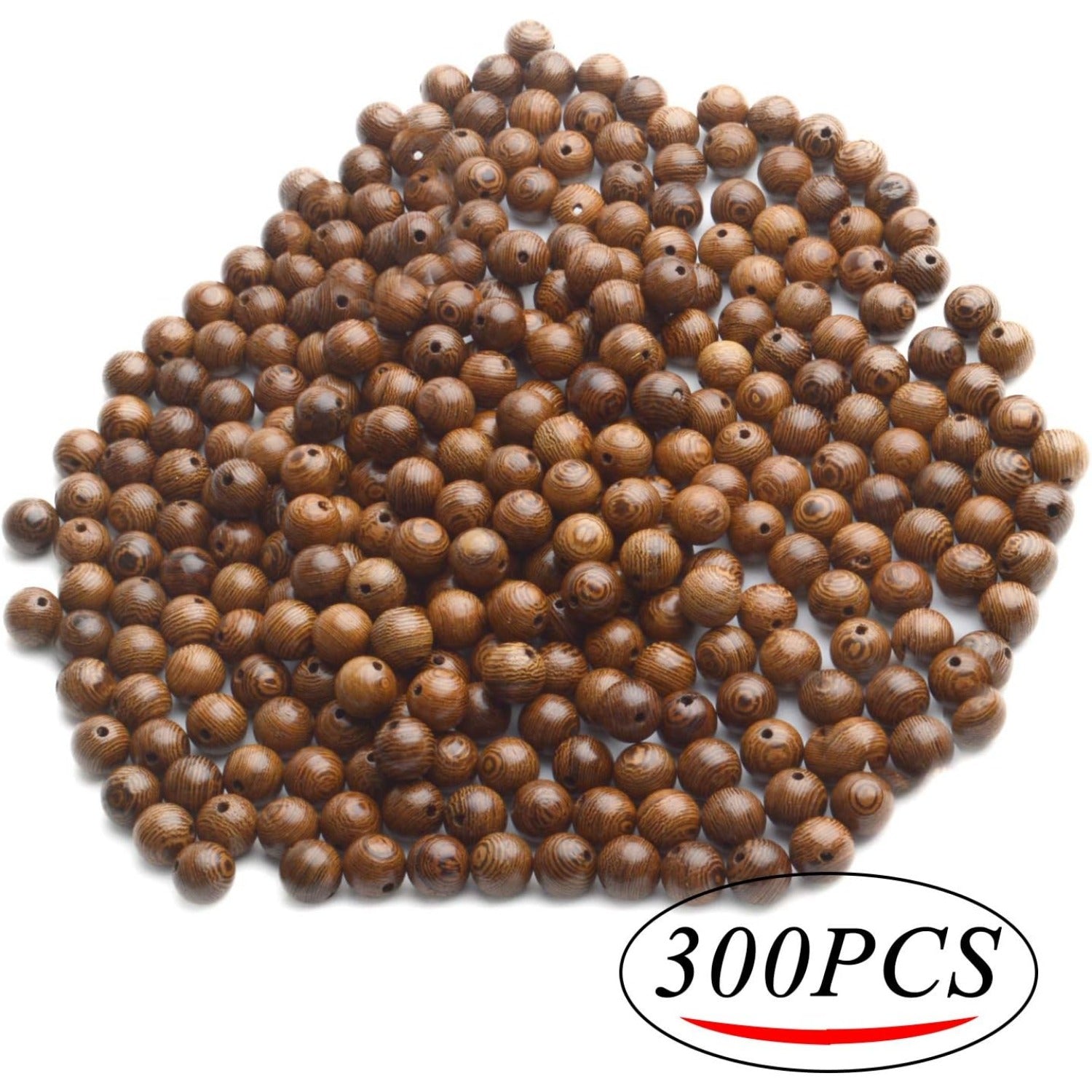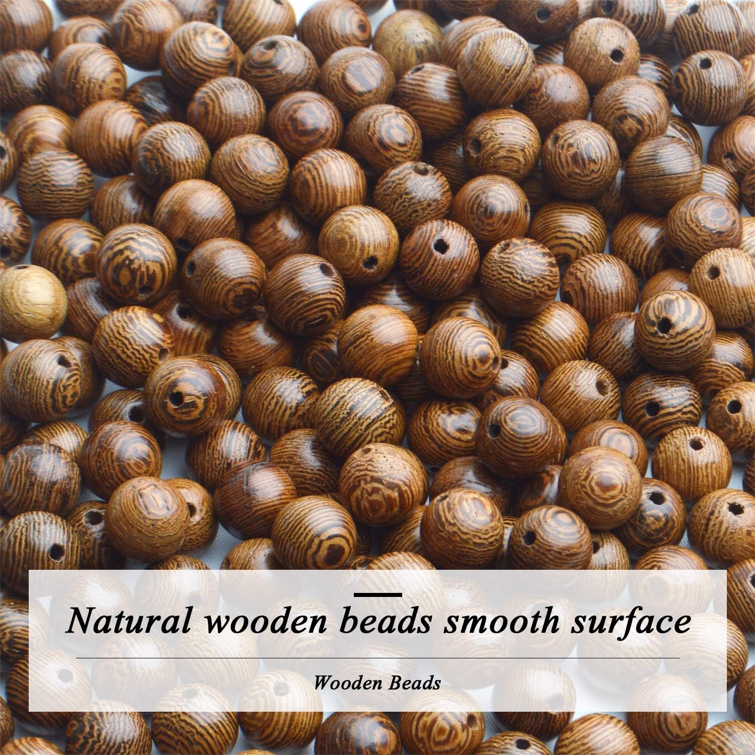 300pcs 10mm Dark Brown Wenge Wood Beads Natural Macrame Round Wood Bead Round Ball Bead Wooden Beads for Bracelets and Jewelry Making