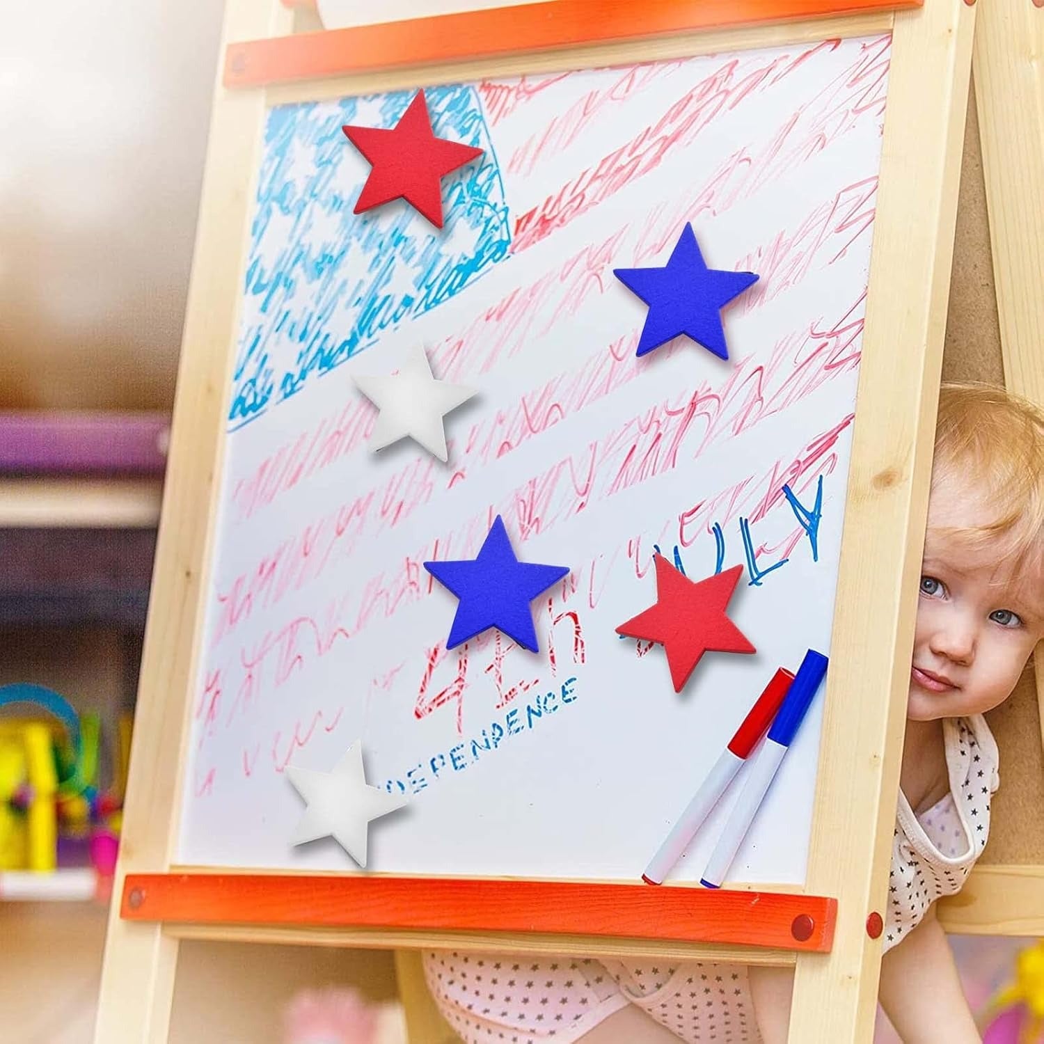 30pcs Blank Wooden Stars Decorations Natutal Wood Star Shape Ornaments Cutouts Stars Wood Slice Pieces for Craft Projects Christmas Party Wedding Decor, Red/White/Blue