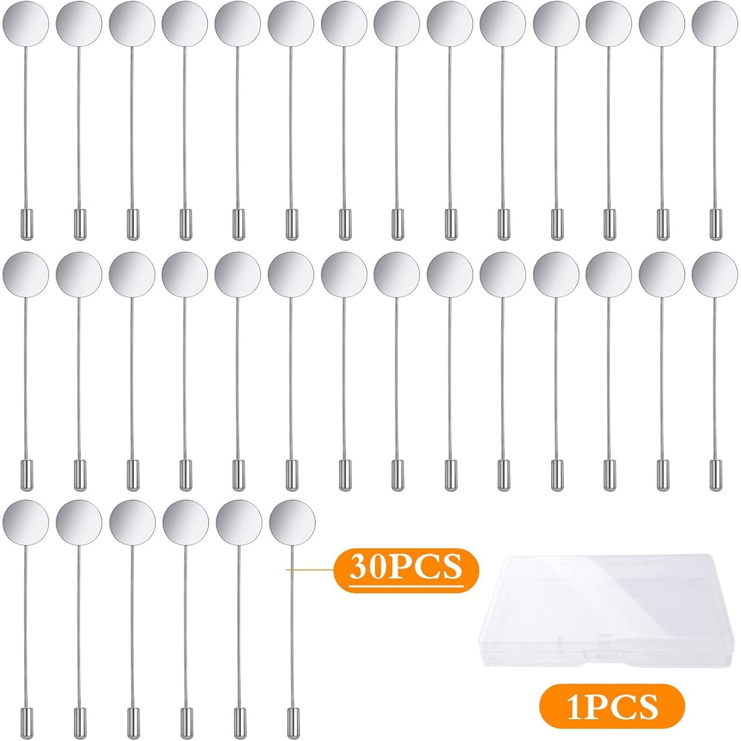 30pcs Round Tray Lapel Stick Pins Stainless Steel Tray Lapel Pin Blank Stick Brooch Pins DIY Costume Jewelry Accessories with a Box for Men Women Suit Tie Hat Scarf Badge
