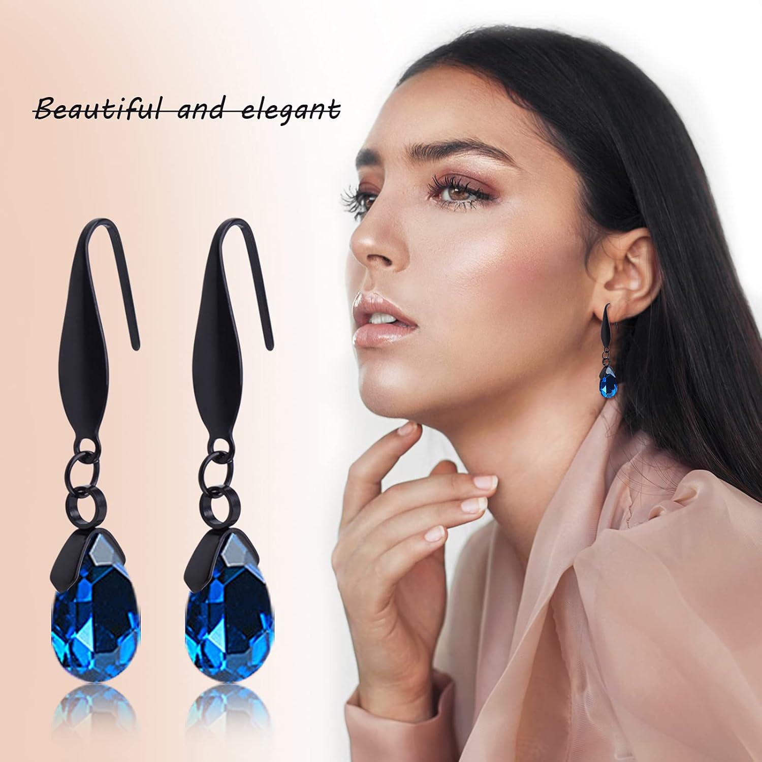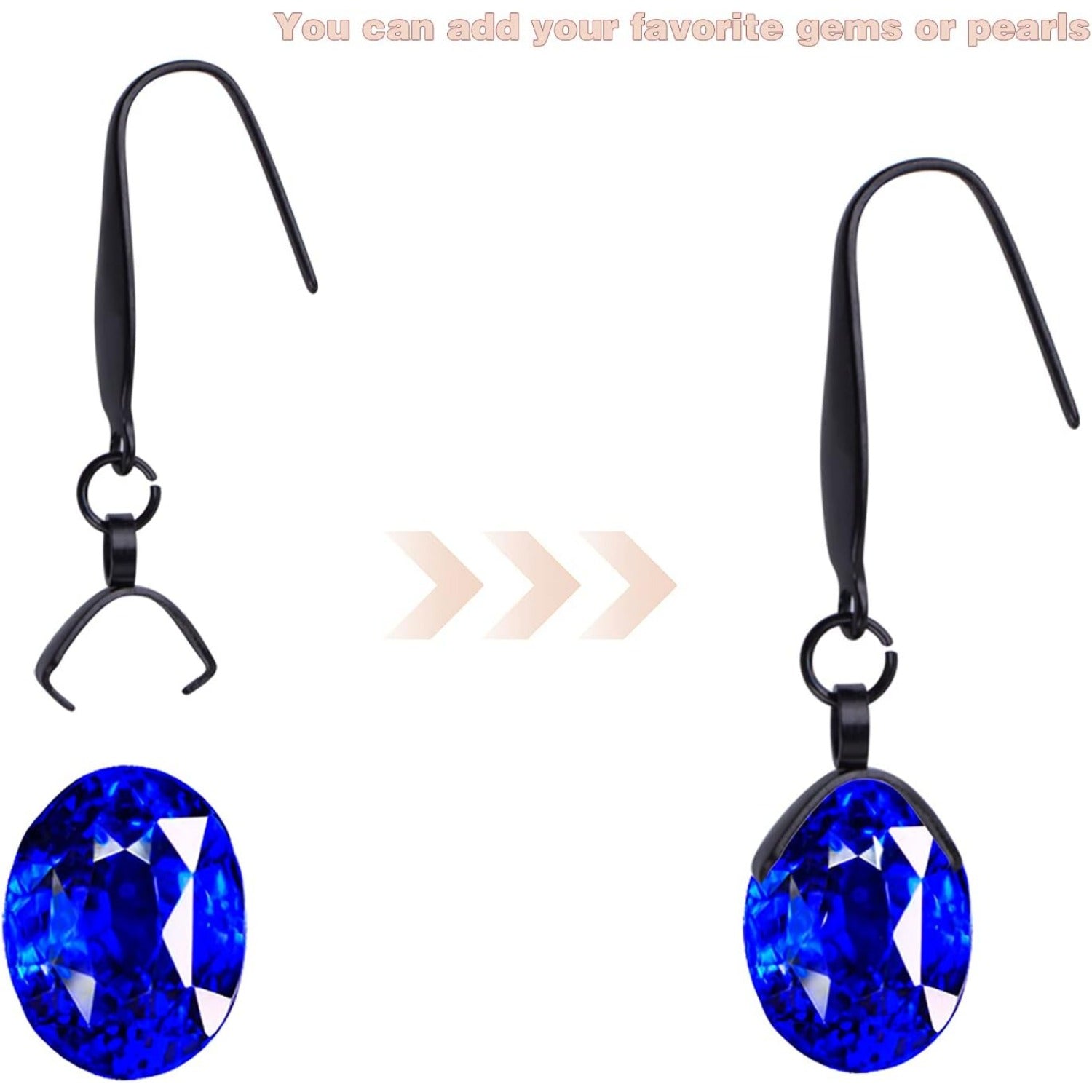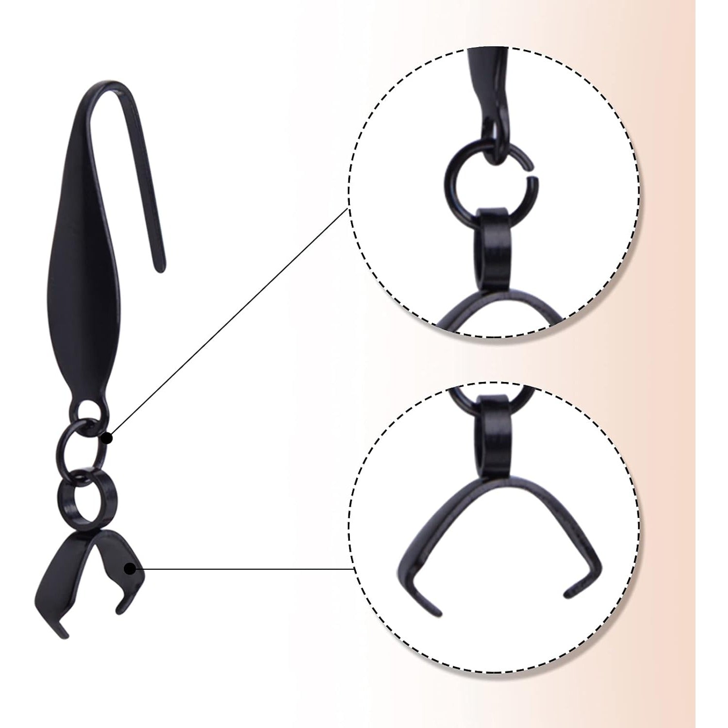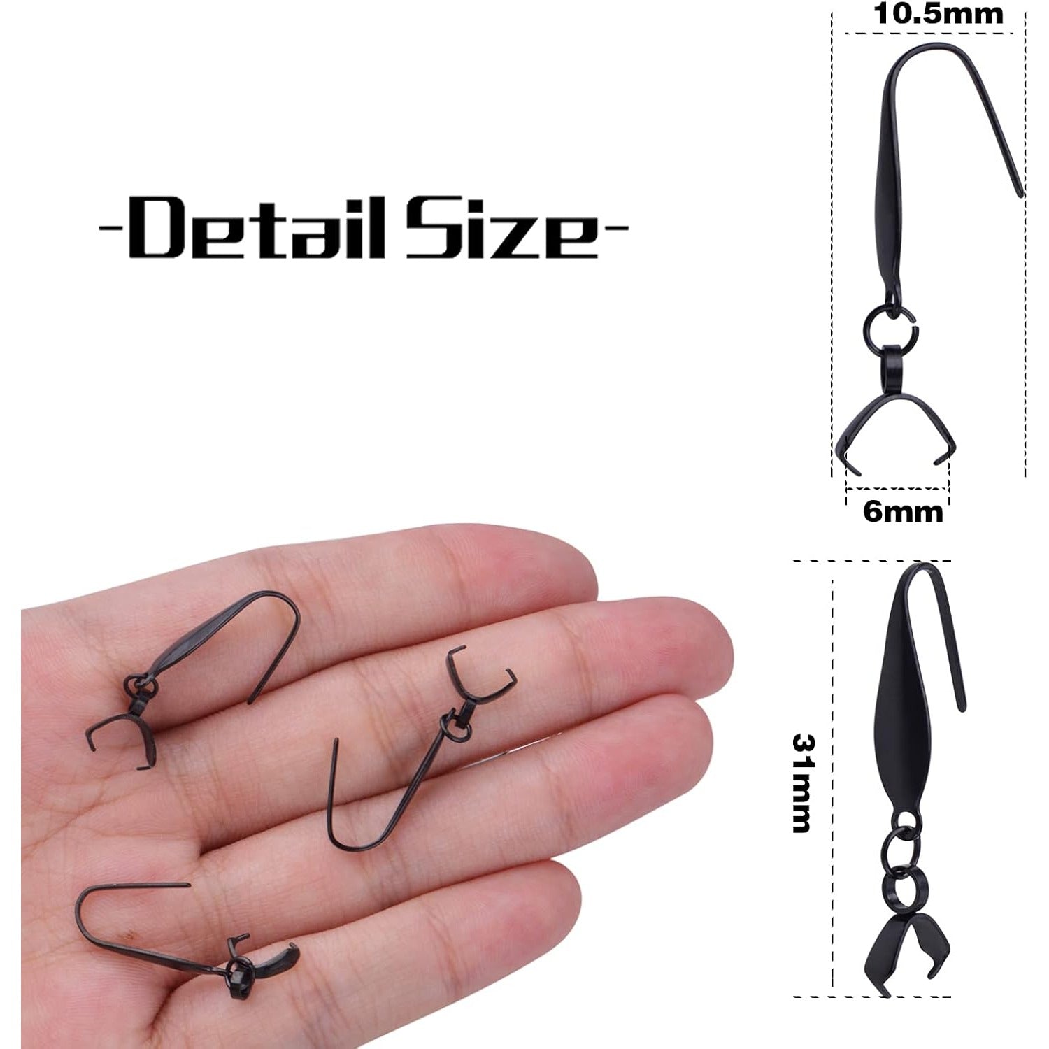 30pcs Stainless Steel Pendant Clasp Earring Hooks Hypoallergenic Ear Wire Buckle Earring Fish Hooks for Women DIY Dangle Earrings Design Jewelry Making, Black, 31 mm x 10.5 mm