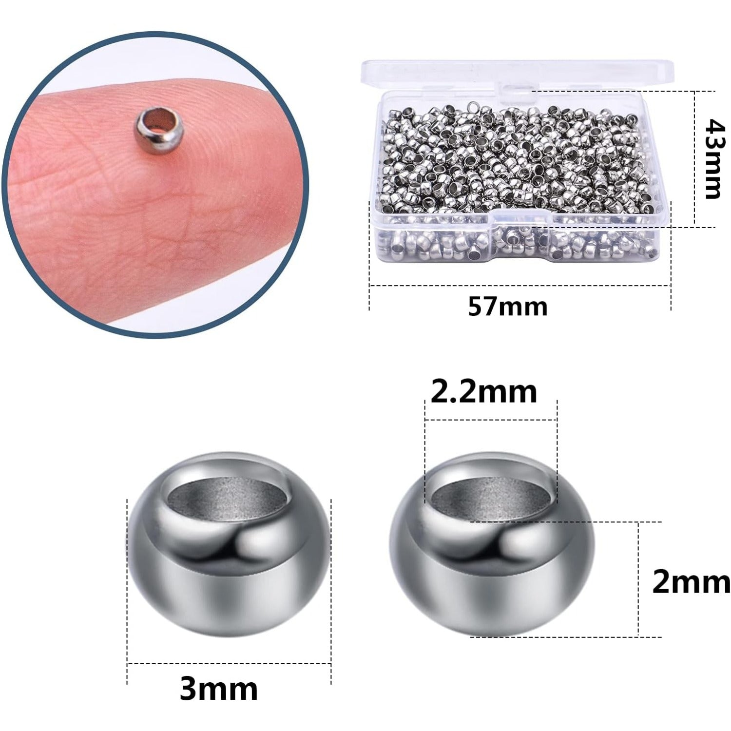 3mm Crimp Beads, 1000pcs Stainless Steel Round Bead Loose Spacer Stoppers Beads Covers with 1pcs Plastic Box for Jewelry Making Bracelets Necklace