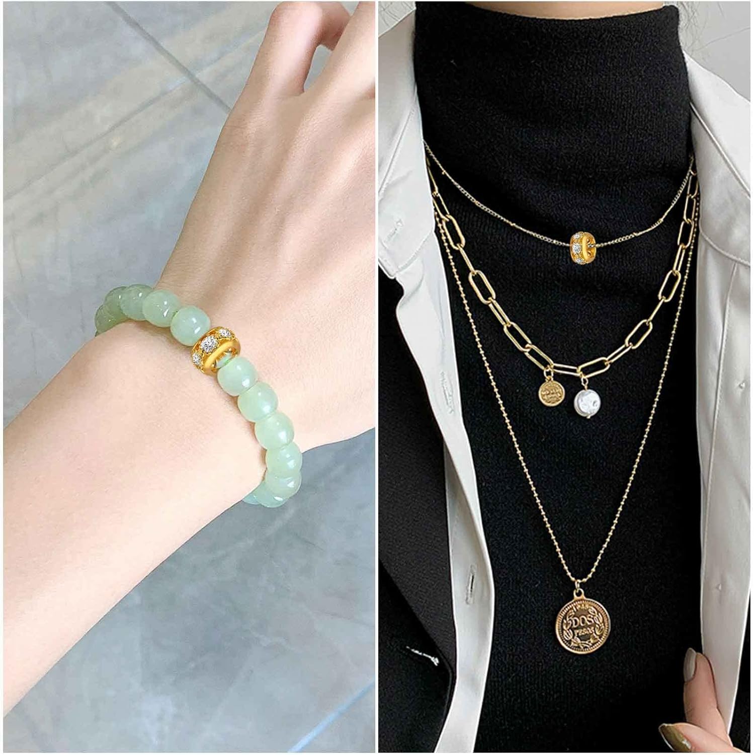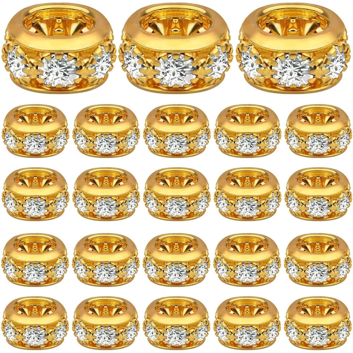 40pcs Rhinestone Rondelle Spacer Beads European Large Hole Beads Loose Charm Beads for DIY Bracelet Necklace Snake Chain Jewelry Making Decor, Bright Golden