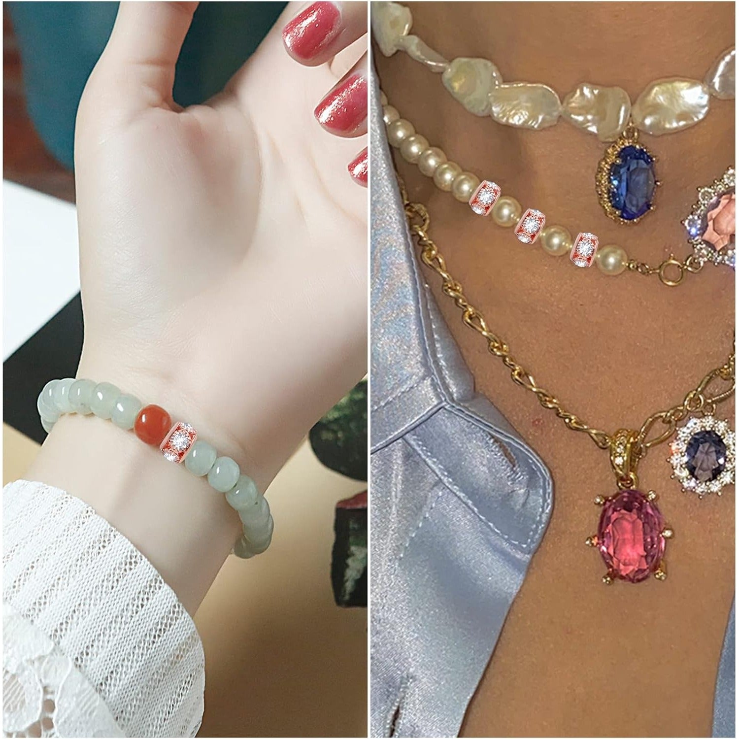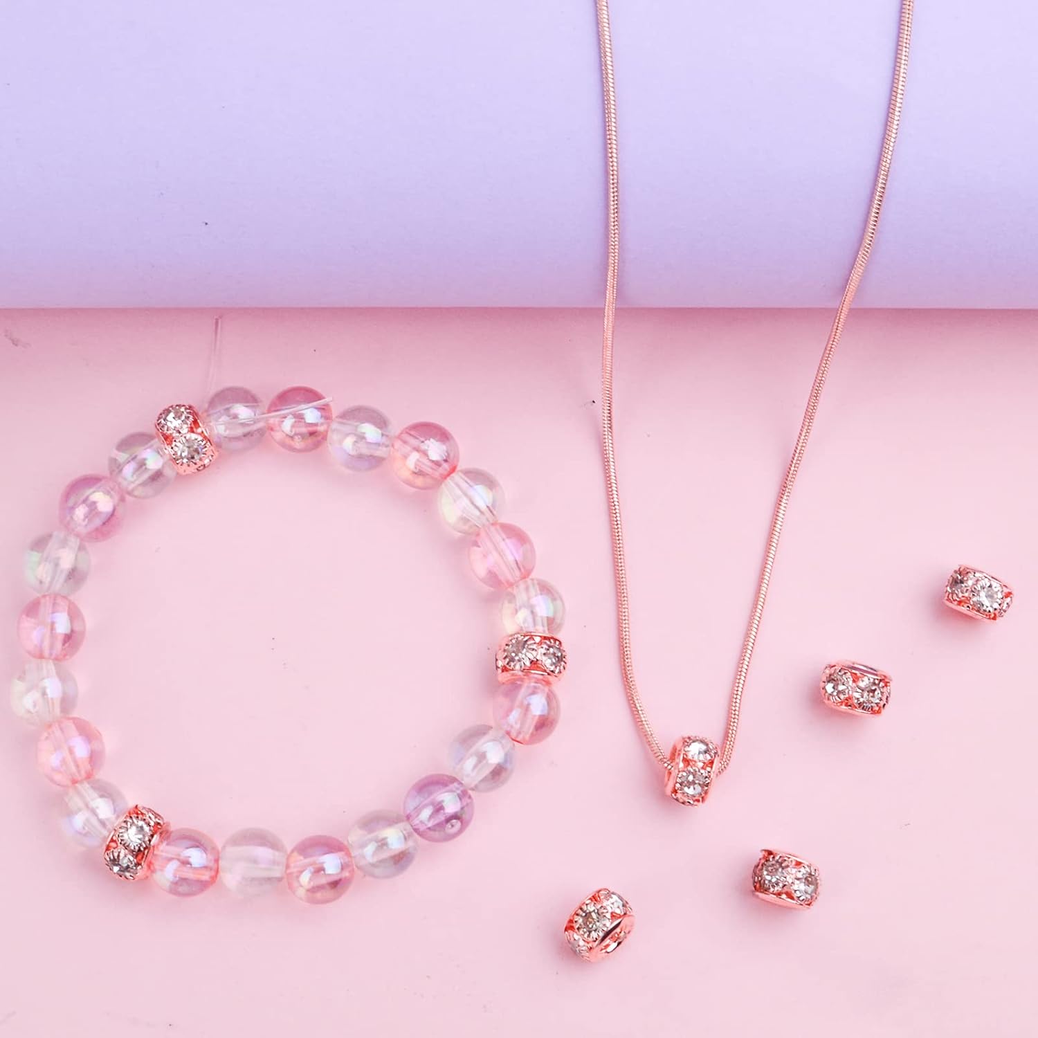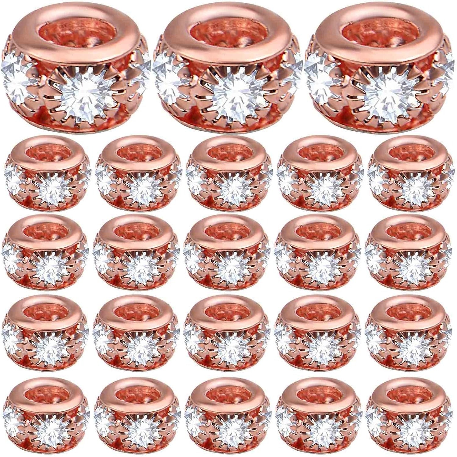 40pcs Rose Golden Crystal Rhinestone Spacer Beads European Large Hole Rondelle Beads for DIY Bracelet Snake Chain Jewelry Making Handmade Decor, Hole: 3.9 mm
