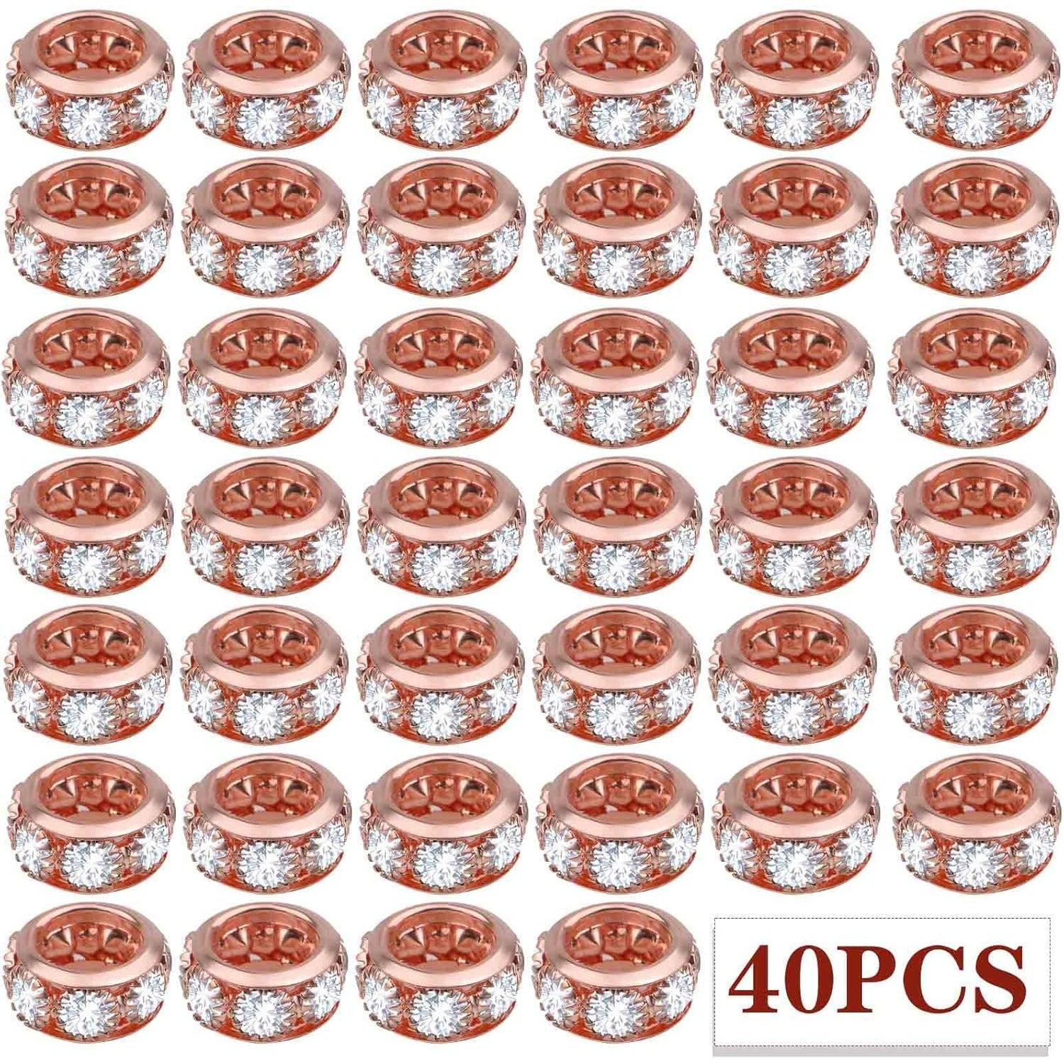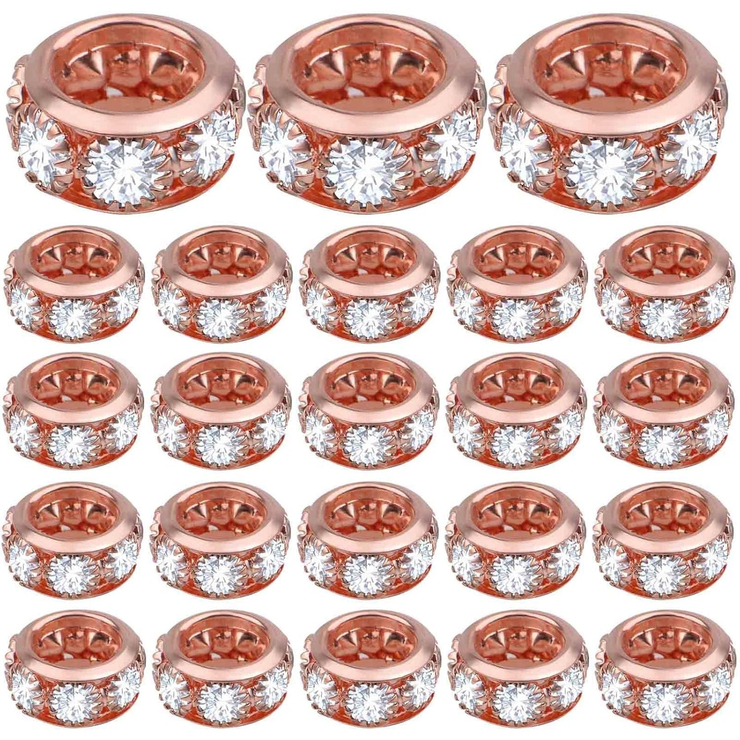 40pcs Rose Golden Crystal Rhinestone Spacer Beads European Large Hole Rondelle Beads for DIY Bracelet Snake Chain Jewelry Making Handmade Decor, Hole: 6.5 mm