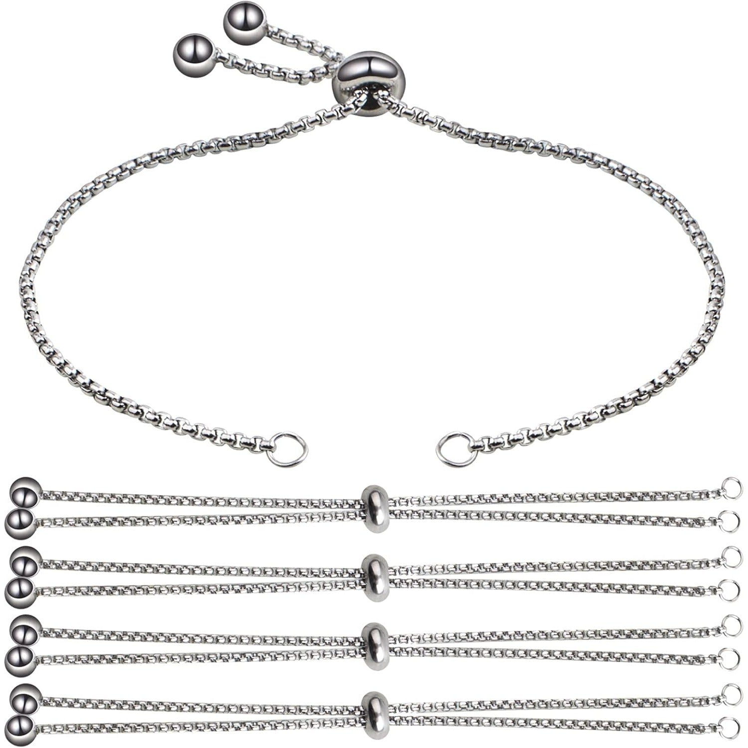 5 Pieces 116 mm Stainless Steel Adjustable Slider Bracelets Hypoallergenic Slider Bracelet Extender Chains with Ball Ends for Women Girls Semi Finished DIY Jewelry Making
