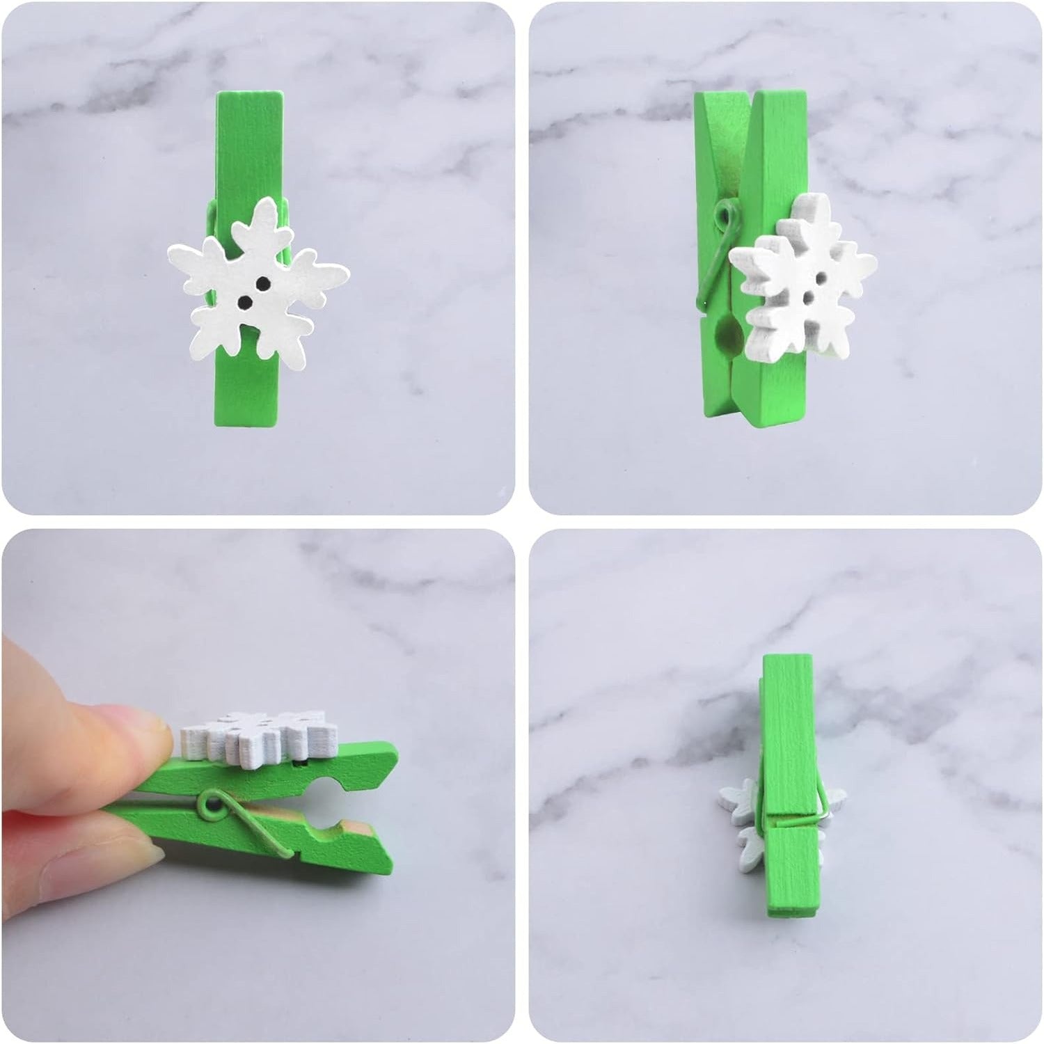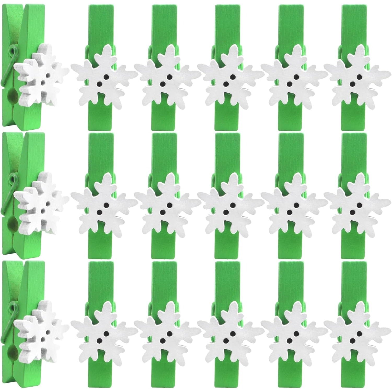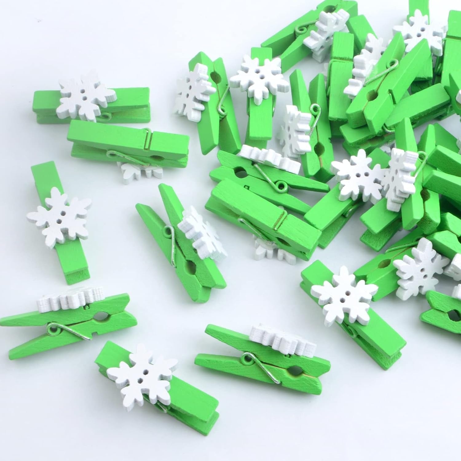 50 Pieces Snowflake Wood Clips Christmas Snowflake Wooden Clothespins Photo Frame Paper Peg Pins DIY Craft Clips for Home School Art Crafts Decoration, Green