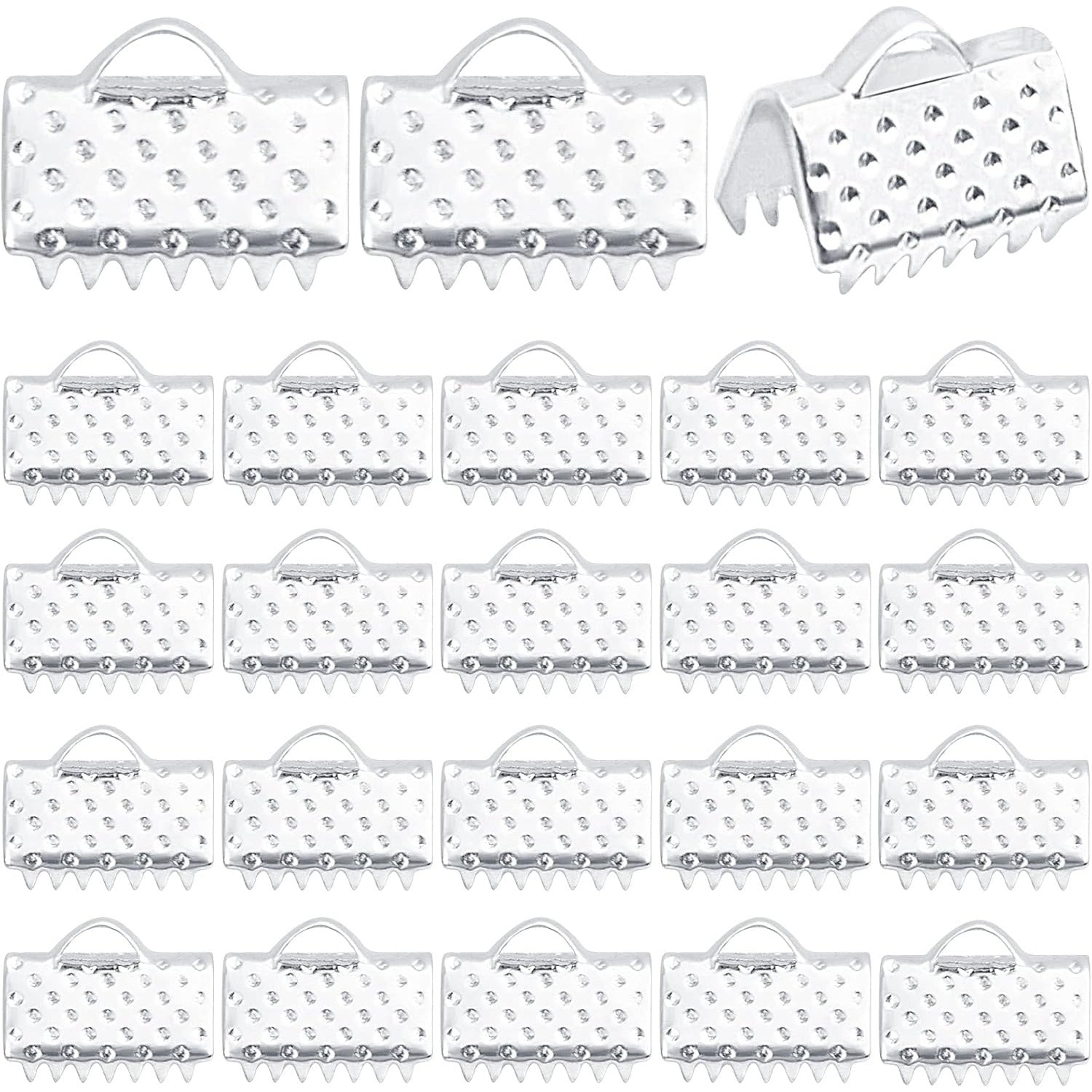 500pcs Silver Plated Pinch Crimp Clamp Ends Cord Ends Fasteners Clasp Metal Ribbon Bookmark Connectors for DIY Bracelet Leather Suede Jewelry Craft Making