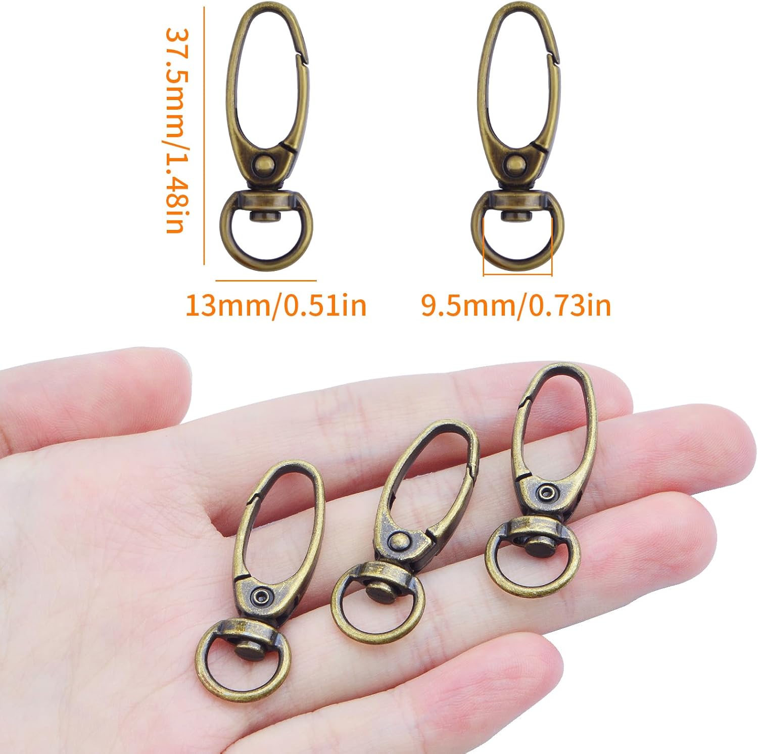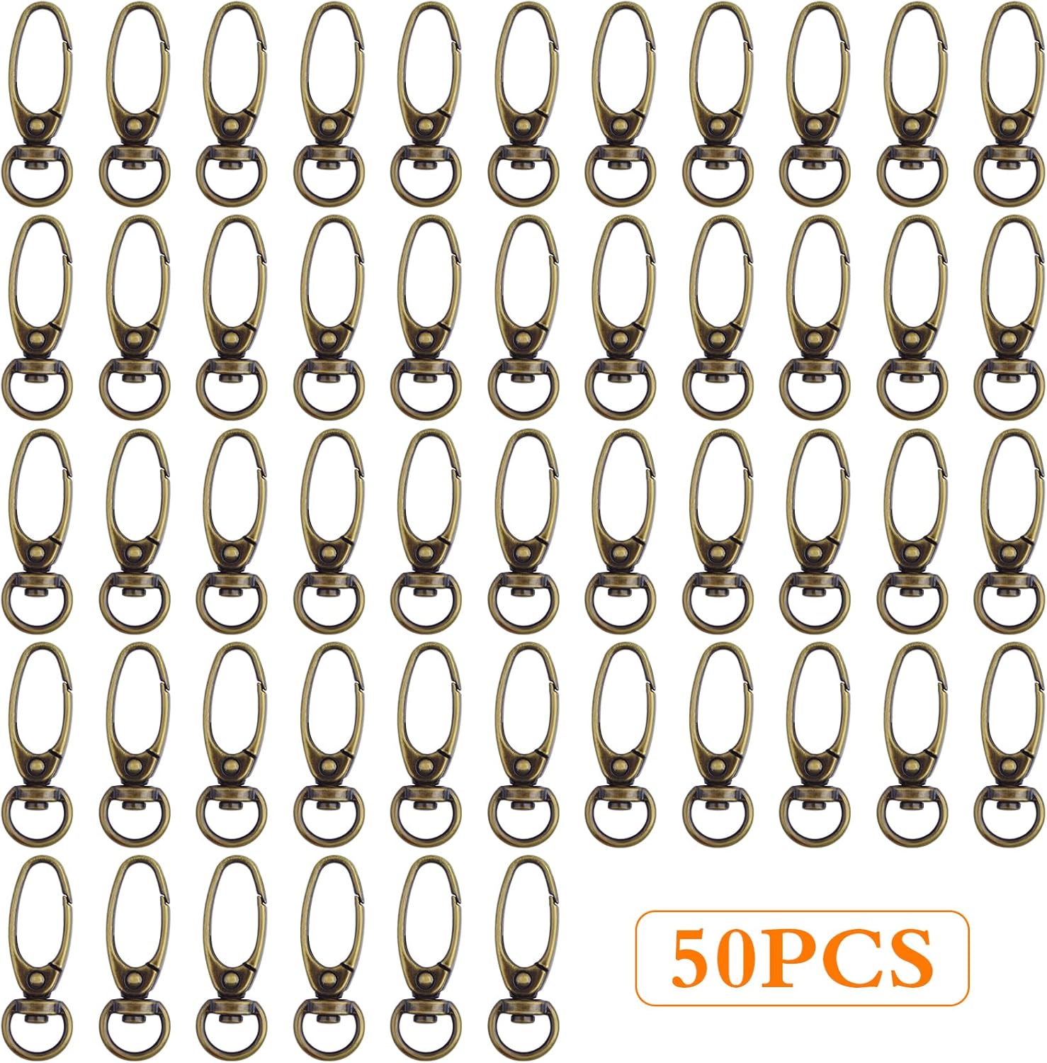 50pcs 38 mm 360 Degree Swivel Trigger Clips Metal Keyring Curved Oval Lobster Clasps Snap Hooks for Keychains Lanyard Handbag Purse Craft Projects Decoration, Antique Bronze